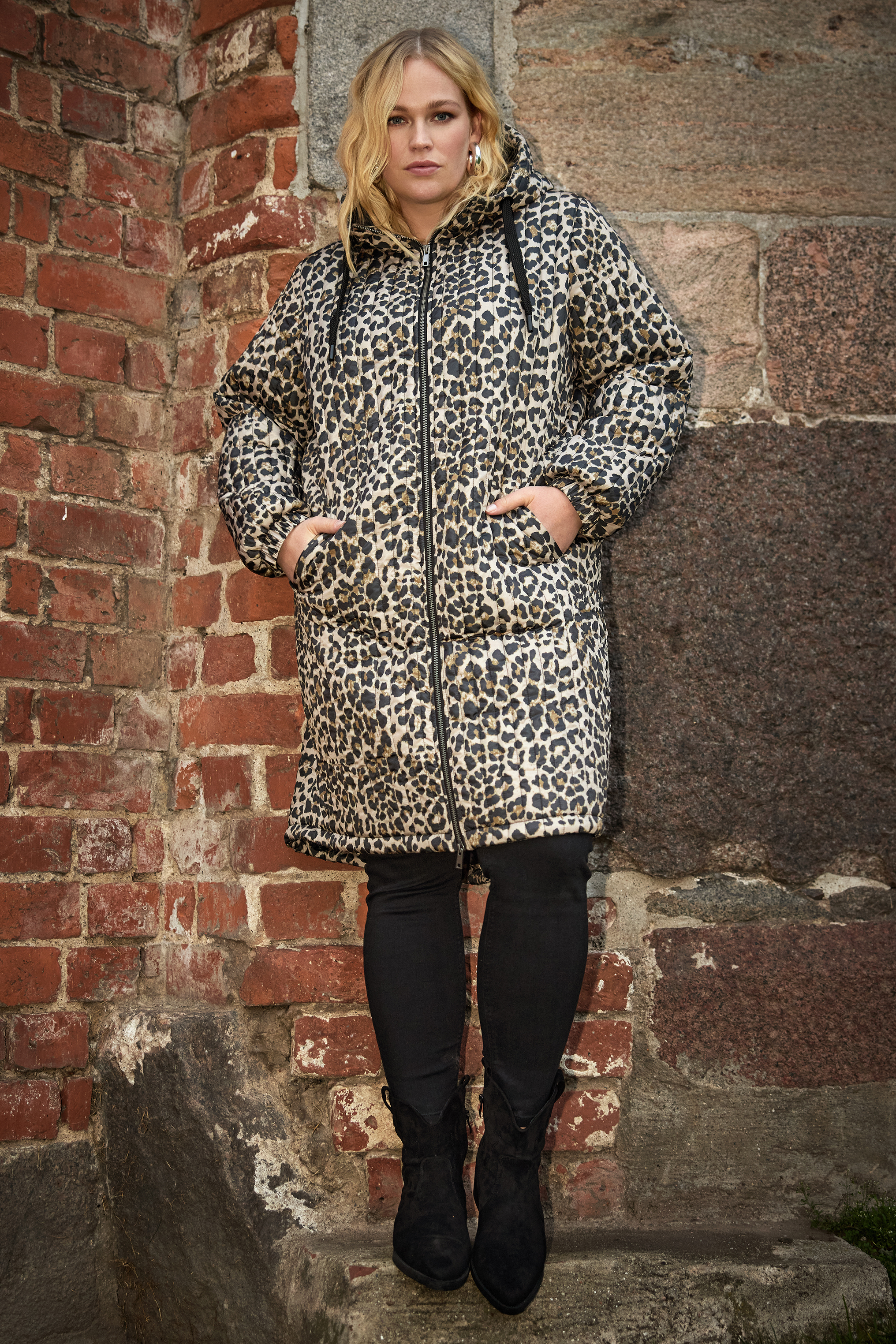 Deze jas van Wasabi Concept heeft een oversized ontwerp met een gedurfde luipaardprint, ideaal voor koude dagen. De ritssluiting en capuchon bieden extra bescherming tegen de kou, terwijl de wijdere mouwen zorgen voor comfort. Met de praktische zakken en de modieuze uitstraling is het een veelzijdige keuze voor zowel casual als elegante looks. Het patroon voegt een opvallend element toe aan elke outfit.
