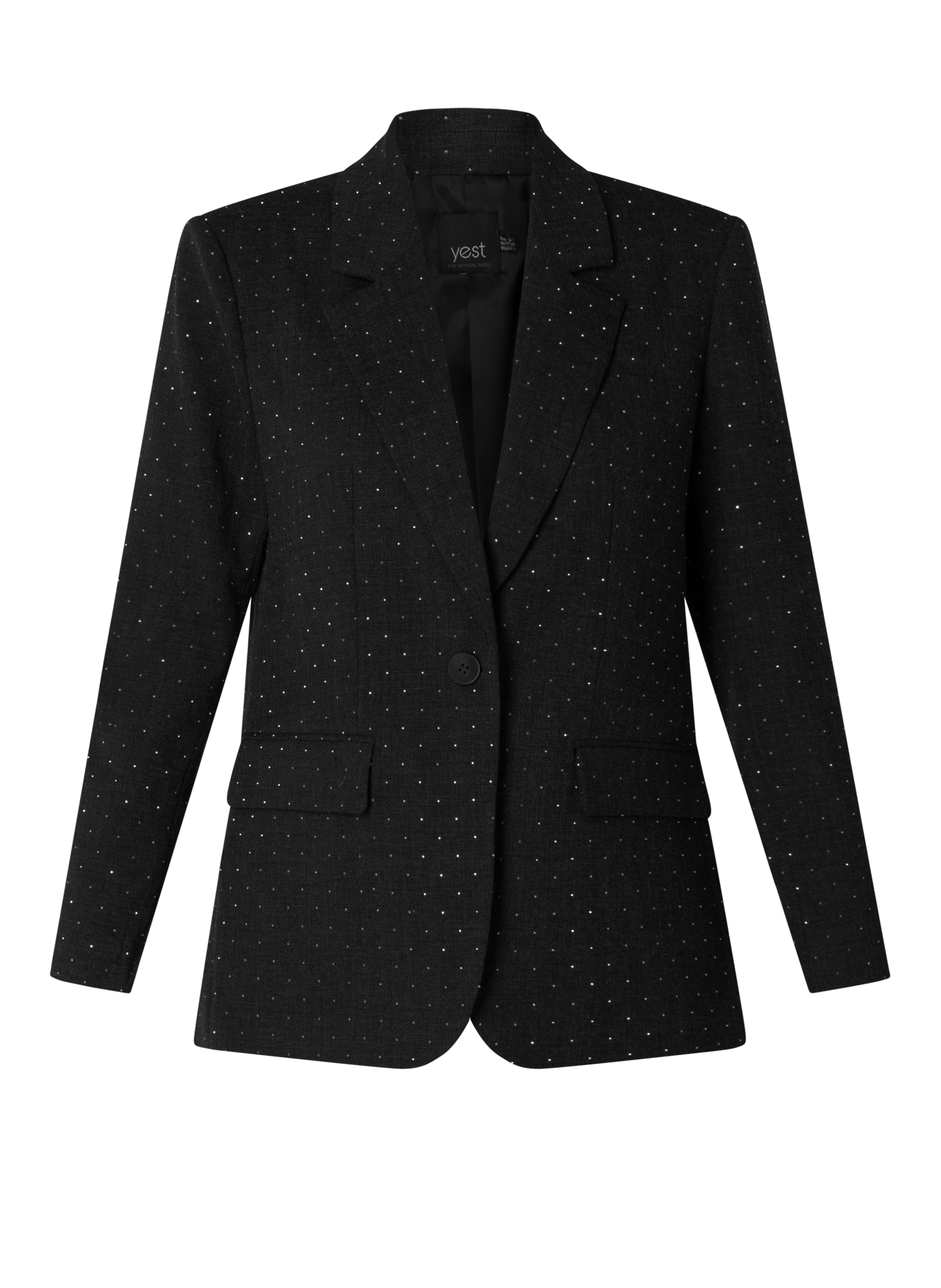 Geef je grote maten outfit een sprankelend accent met deze YEST blazer. De blazer is voorzien van all-over glittersteentjes voor een subtiele, feestelijke glans.