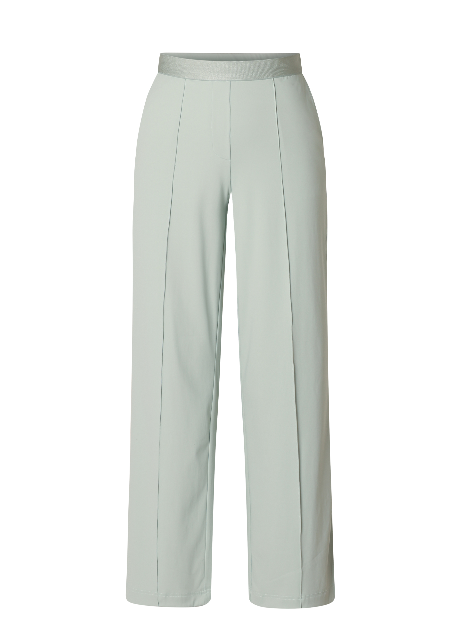 Deze Yest pantalon heeft een moderne "wide fit", waardoor de pijpen soepel en ruim om de benen vallen zonder zwaar aan te voelen. De elastische tailleband zorgt voor een perfecte aansluiting en optimaal draaggemak. Voor een elegante uitstraling is de broek voorzien van stijlvolle persnaden aan de voorzijde. Met een binnenbeenlengte van 32 inch valt de broek prachtig lang. Of u nu kiest voor de frisse pastelgroene tint of de warme kleur Dark Terra, deze pantalon is een onmisbare basic voor uw plus size garderobe.
