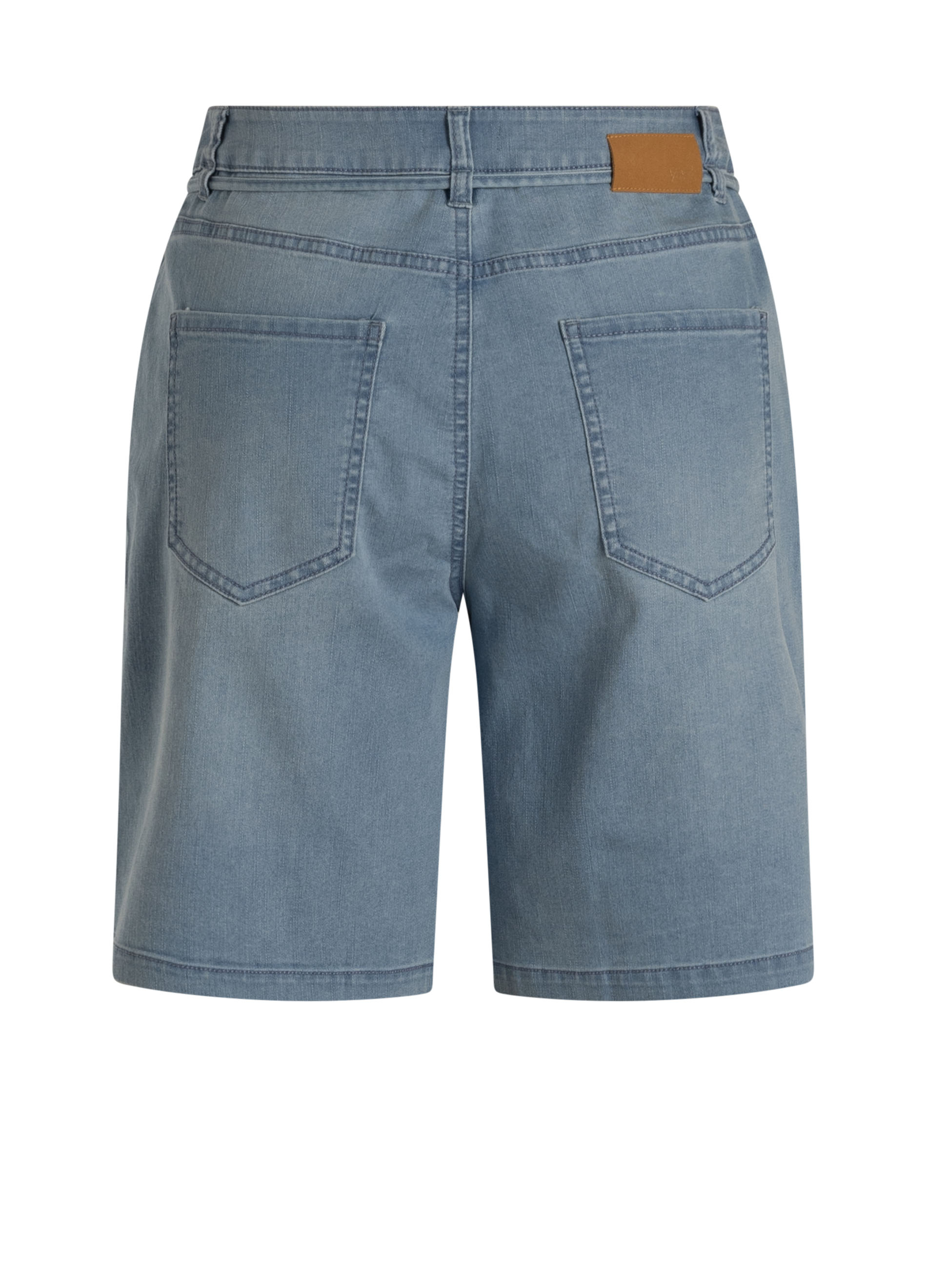 Artikelnummer: A006387 Pasvorm: Normale pasvorm Samenstelling: 73% katoen, 26% polyester, 1% elastane Lengte: 9 inch Kwaliteit: Denim