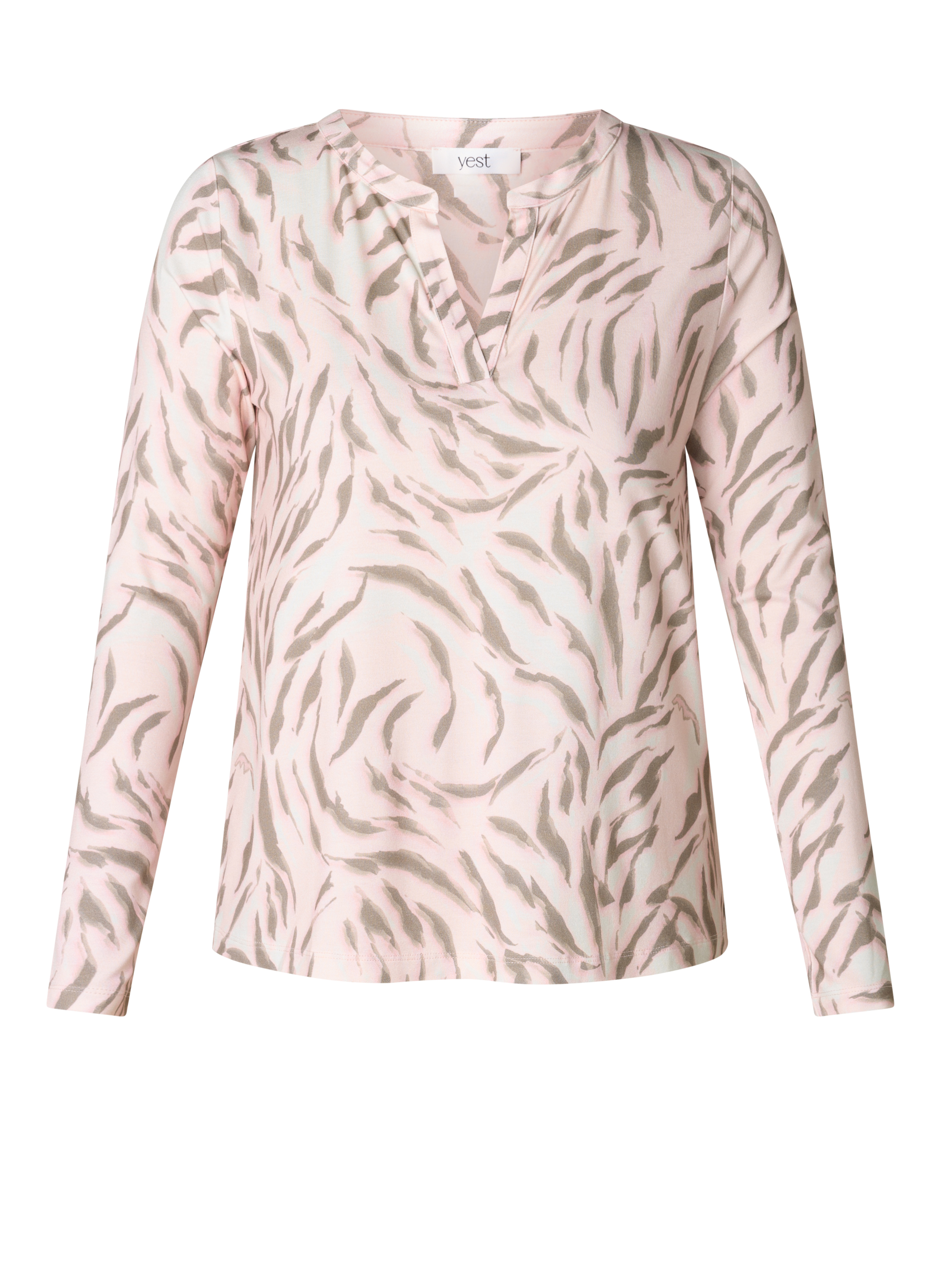 Het shirt heeft een regular fit pasvorm en valt soepel langs het lichaam. De V-hals met een kleine inkeping geeft een subtiel detail waardoor de top elegant valt. Hierdoor krijgt het Valery shirt van Yest curve een verzorgde uitstraling die makkelijk te combineren is met verschillende outfits.