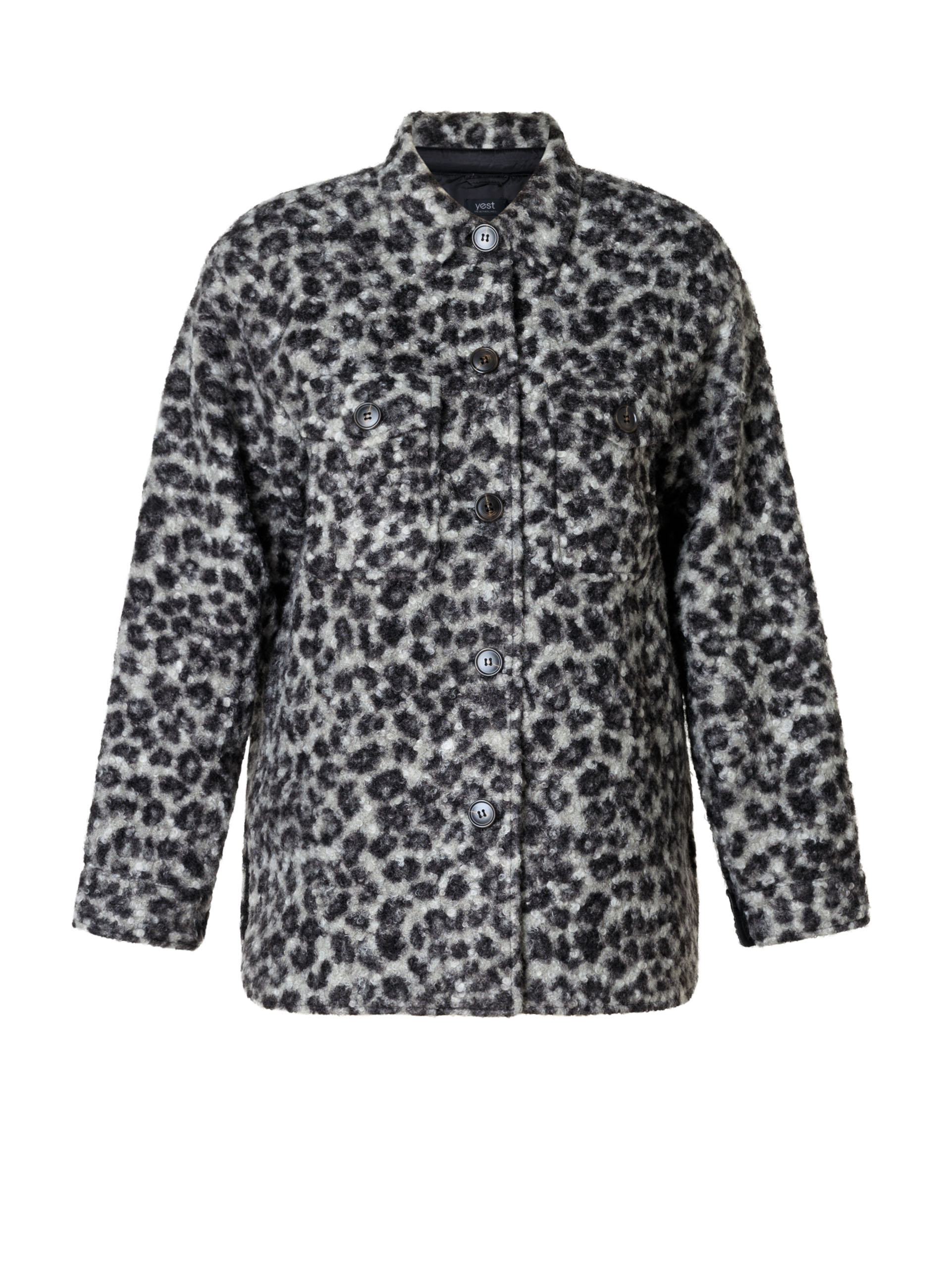 Het model heeft een comfort fit pasvorm en een lengte van 85 cm, waardoor de jas mooi over de heupen valt en goed combineert met zowel casual als iets nettere looks. De dunne voering zorgt voor extra draagcomfort en warmte, terwijl de knoopsluiting en borstzakken praktische details toevoegen. De YEST CURVE Animalprint Tussenjas is perfect te dragen als lichte buitenjas of als warm overshirt binnen.