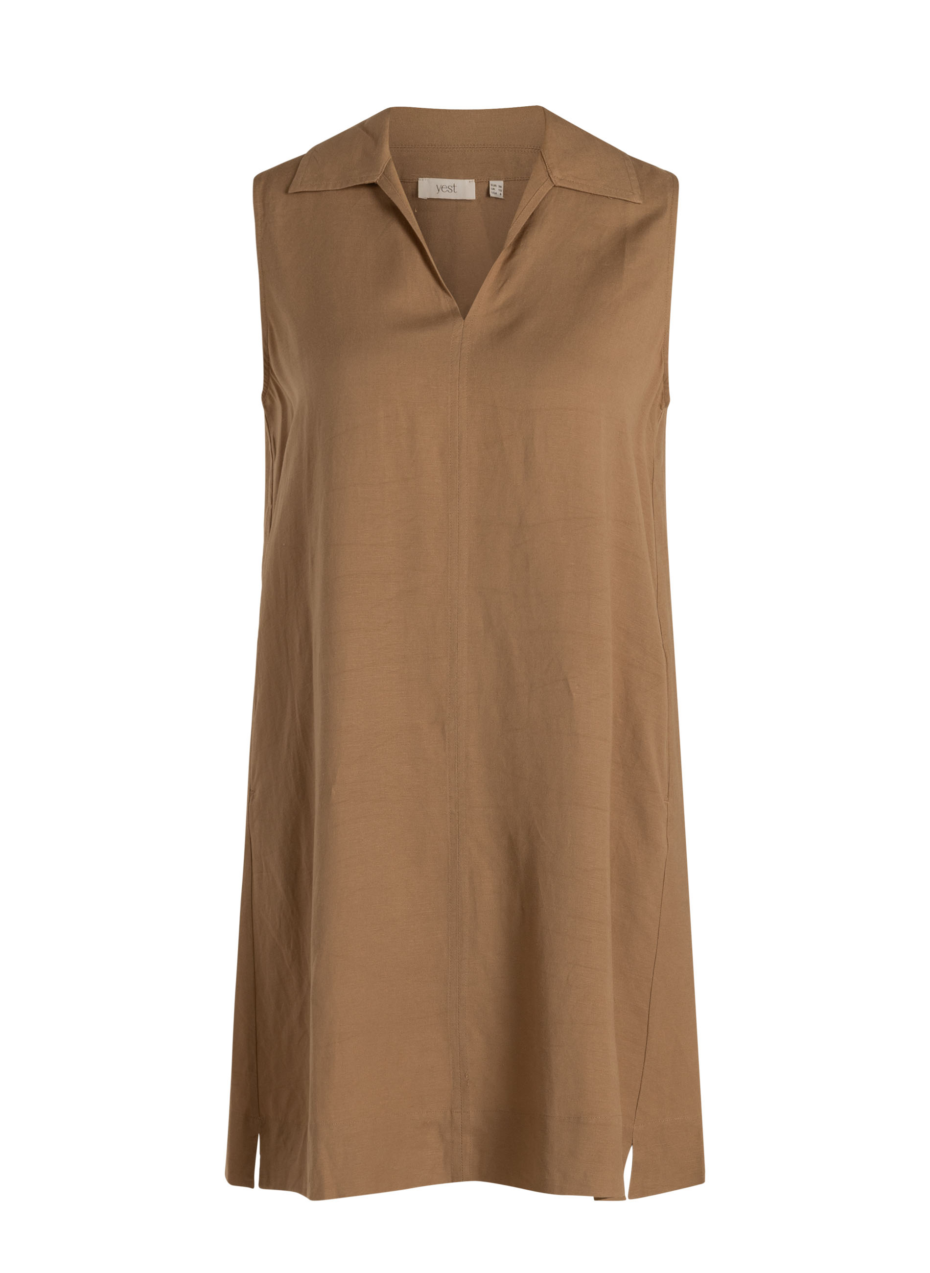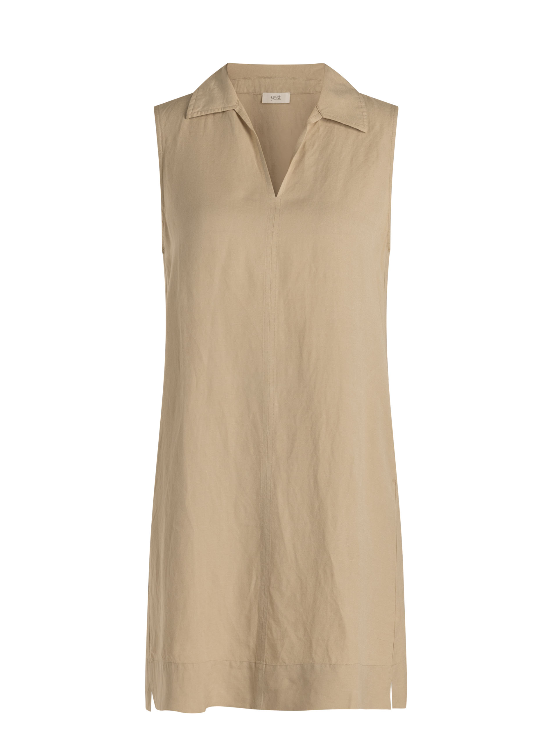 Warme dagen vragen om iets lichts dat prettig draagt. Deze jurk combineert linnen en viscose voor een luchtig gevoel, terwijl de A-lijn mooi om het lichaam valt. De kraag en V-hals geven het geheel een nette twist, zonder dat het zwaar oogt.
