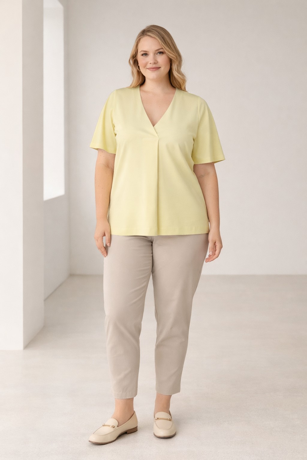 Met zijn soepele viscosemix voelt dit T-shirt van Yest Curve prettig zacht aan op de huid. De A-lijn fit biedt wat extra bewegingsvrijheid en volgt het lichaam zonder strak te zitten. De V-hals en de middenplooi maken de Fawn Essential tot een makkelijk te combineren top voor zowel werk als vrije tijd.