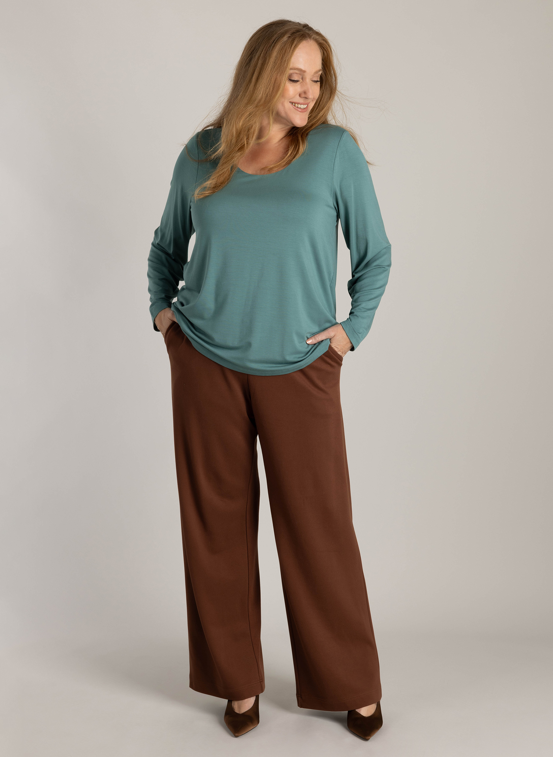 YEST CURVE dark mint longsleeve – slim fit plus size top