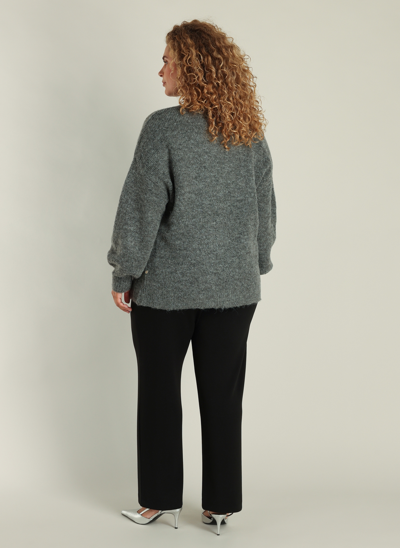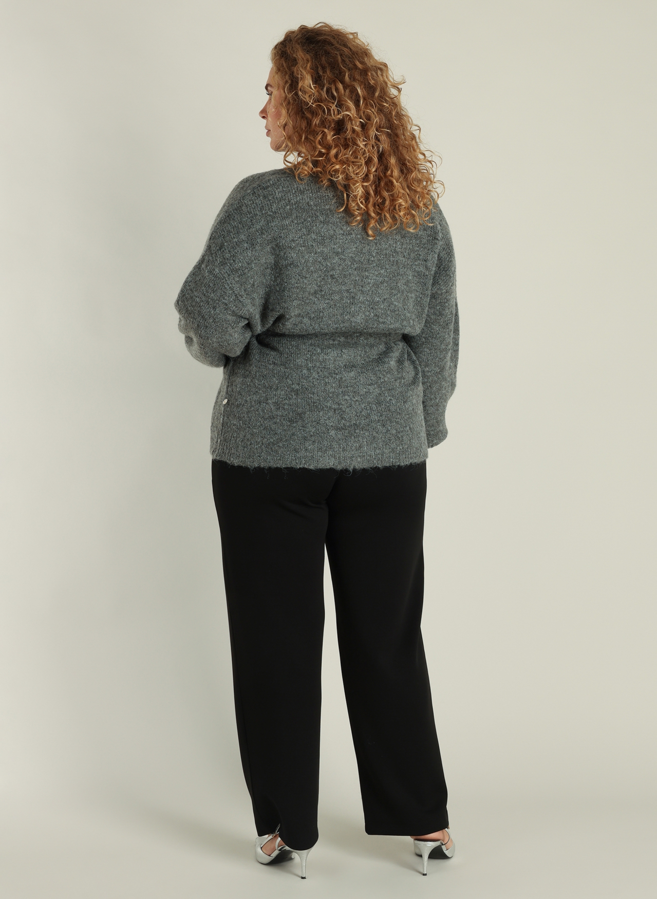 Dit zachtgebreide vest van Yest Curve is perfect voor dames in grote maten die comfort en stijl willen combineren. Het donkergrijs melange geeft een tijdloze uitstraling, terwijl het wijdvallende model met extra wijde mouwen zorgt voor een nonchalante en relaxte look.