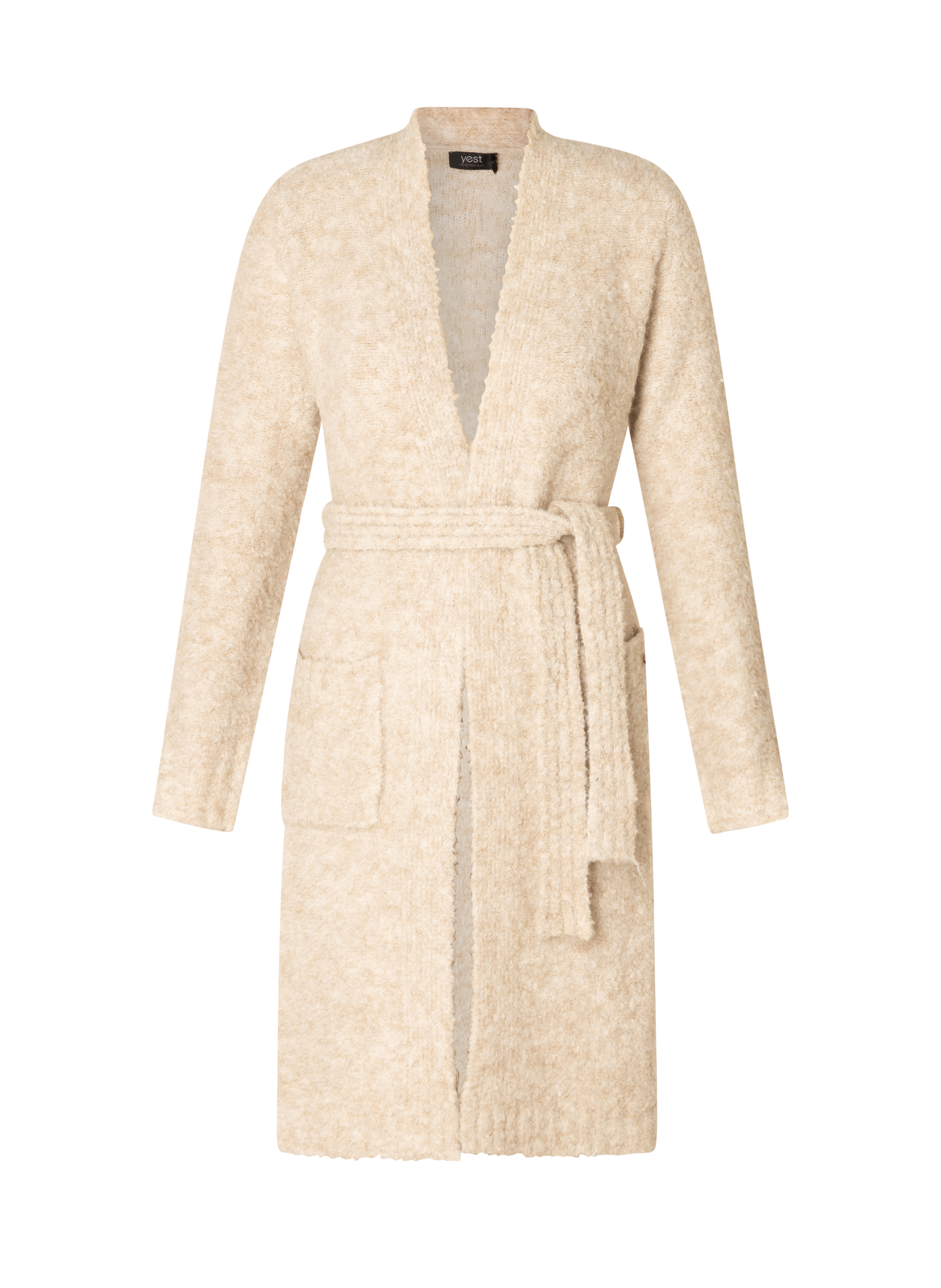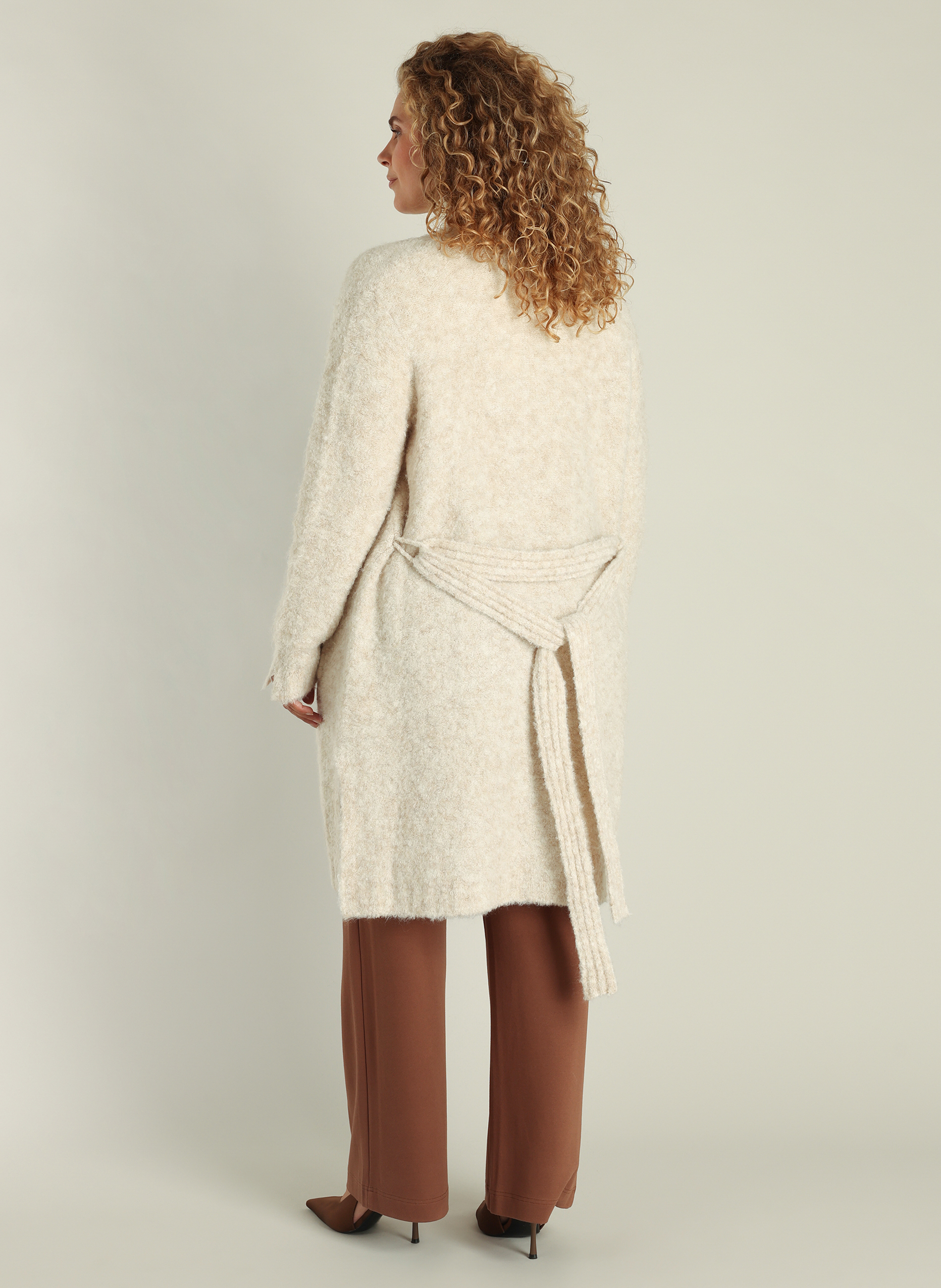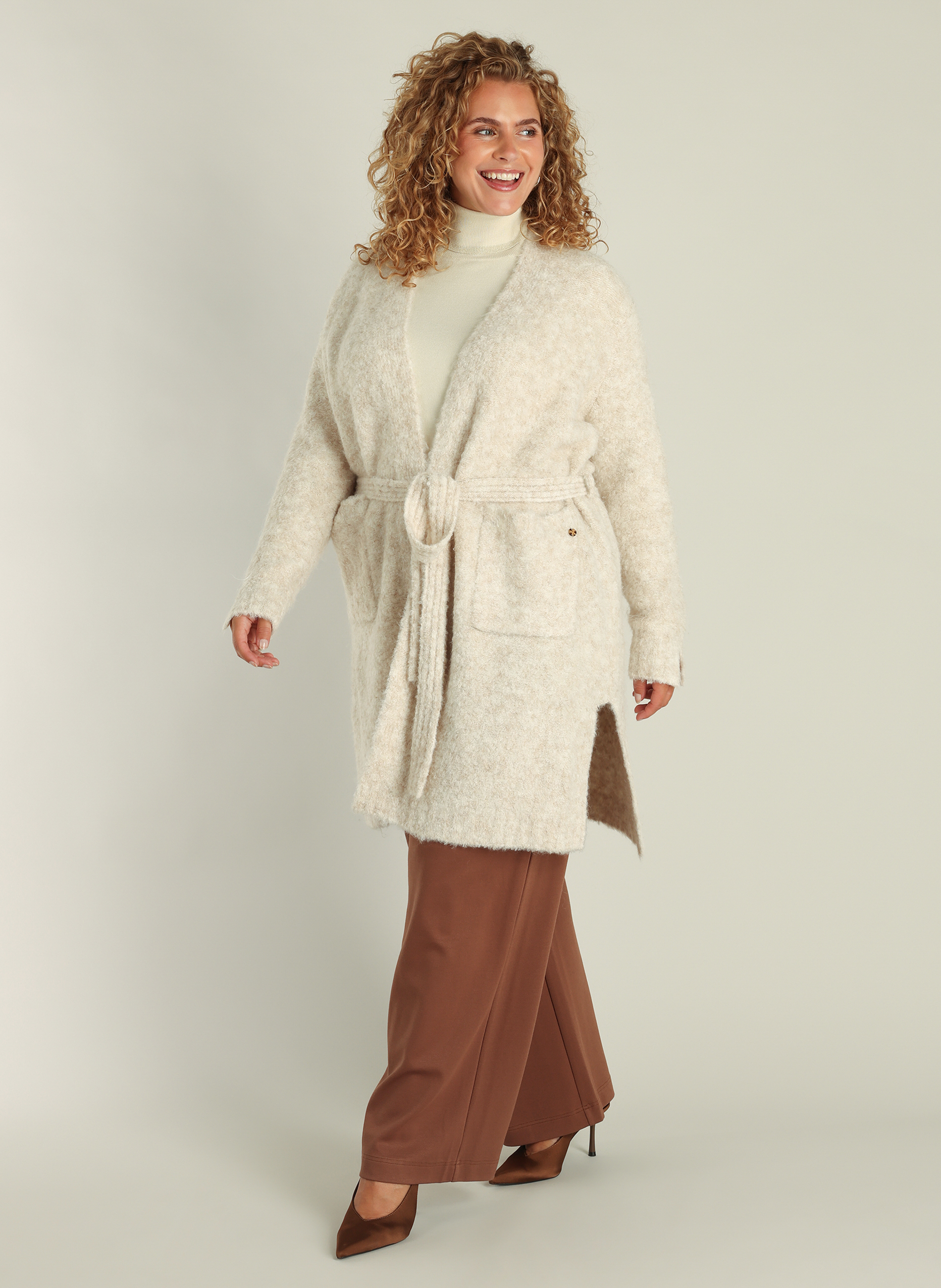 • Details: Fluffy structuur, strikceintuur, 2 steekzakken
