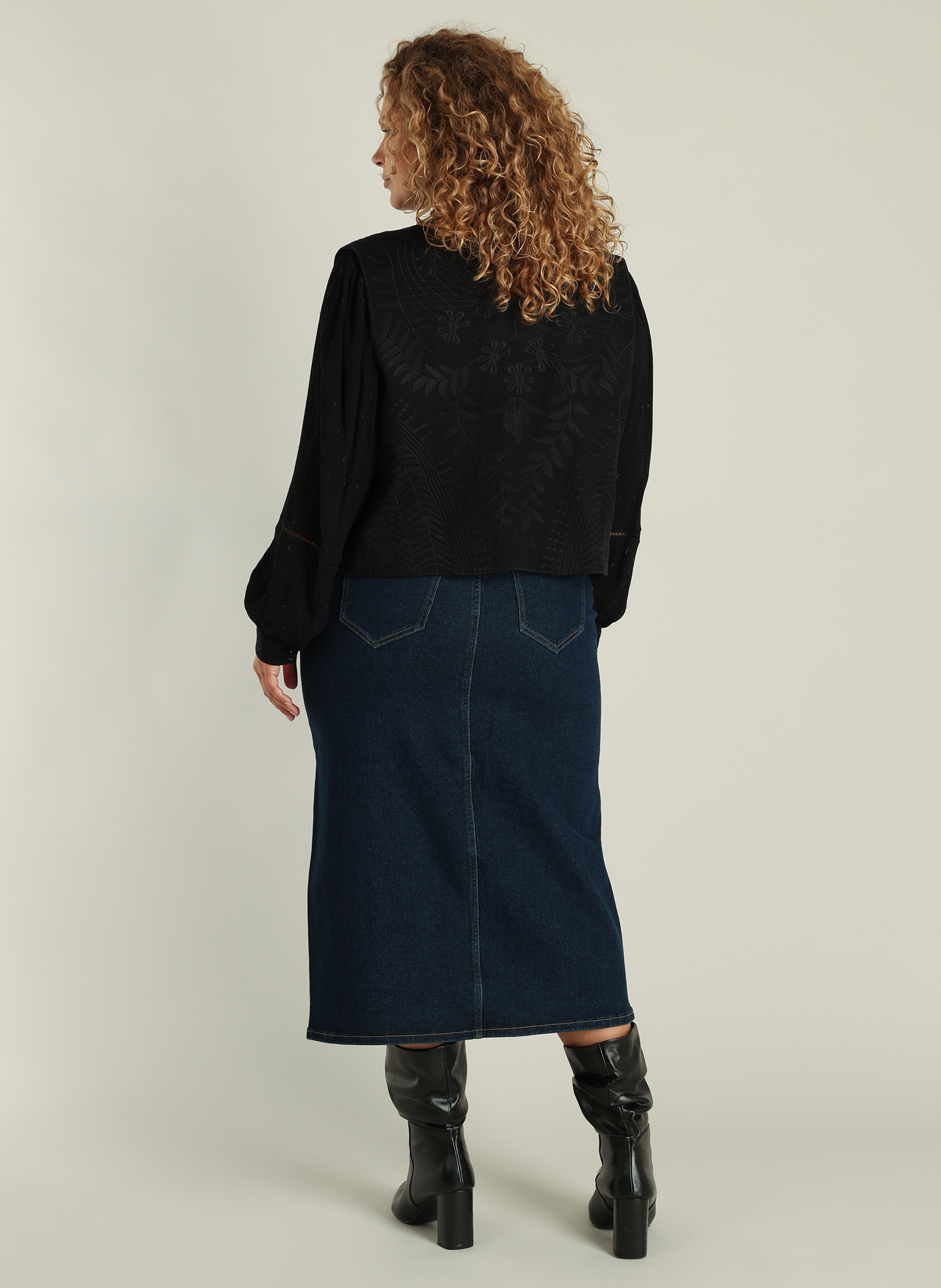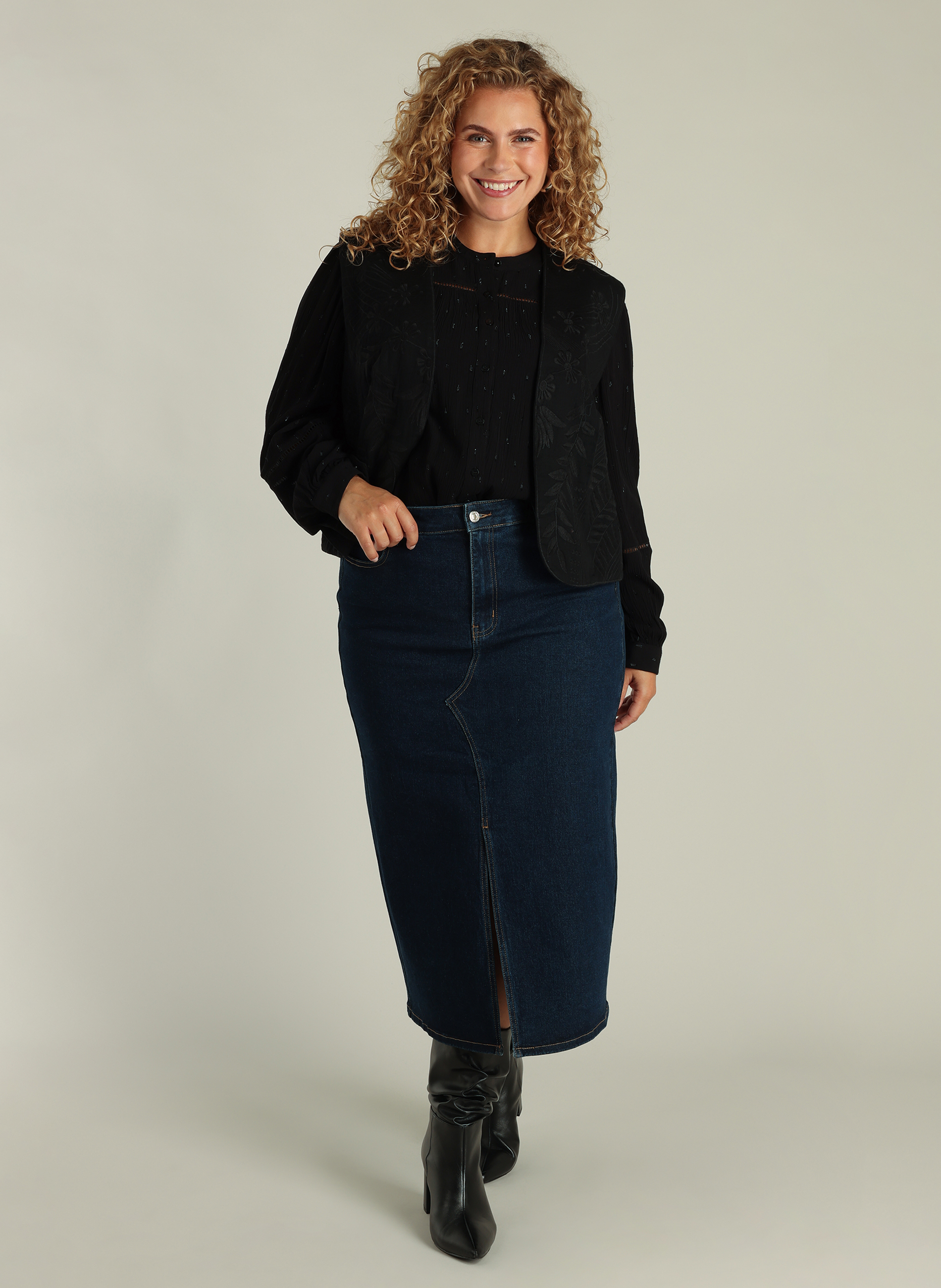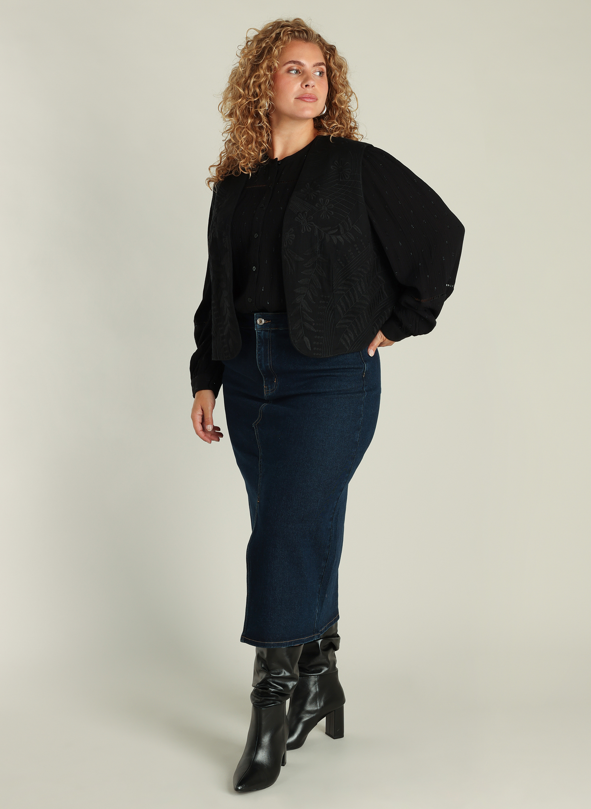 🖤 YEST Curve zwart geborduurd gilet – grote maten damesmode