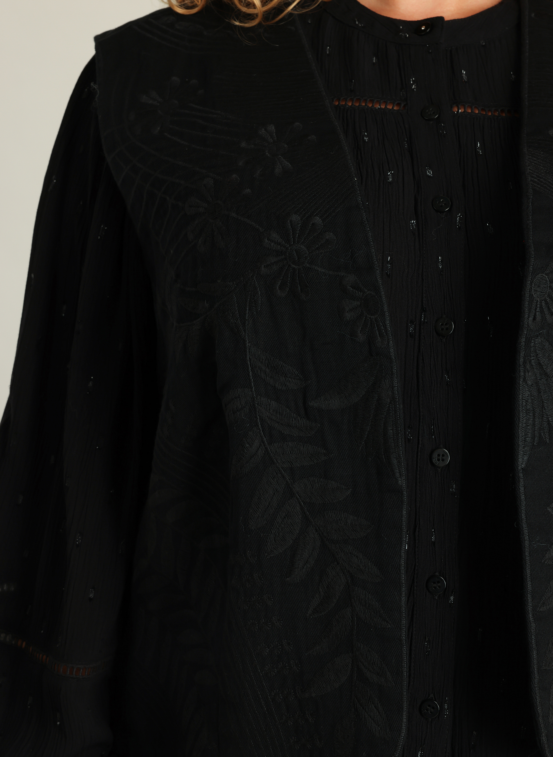 • Details: Zwart gilet met borduurwerk, mouwloos model