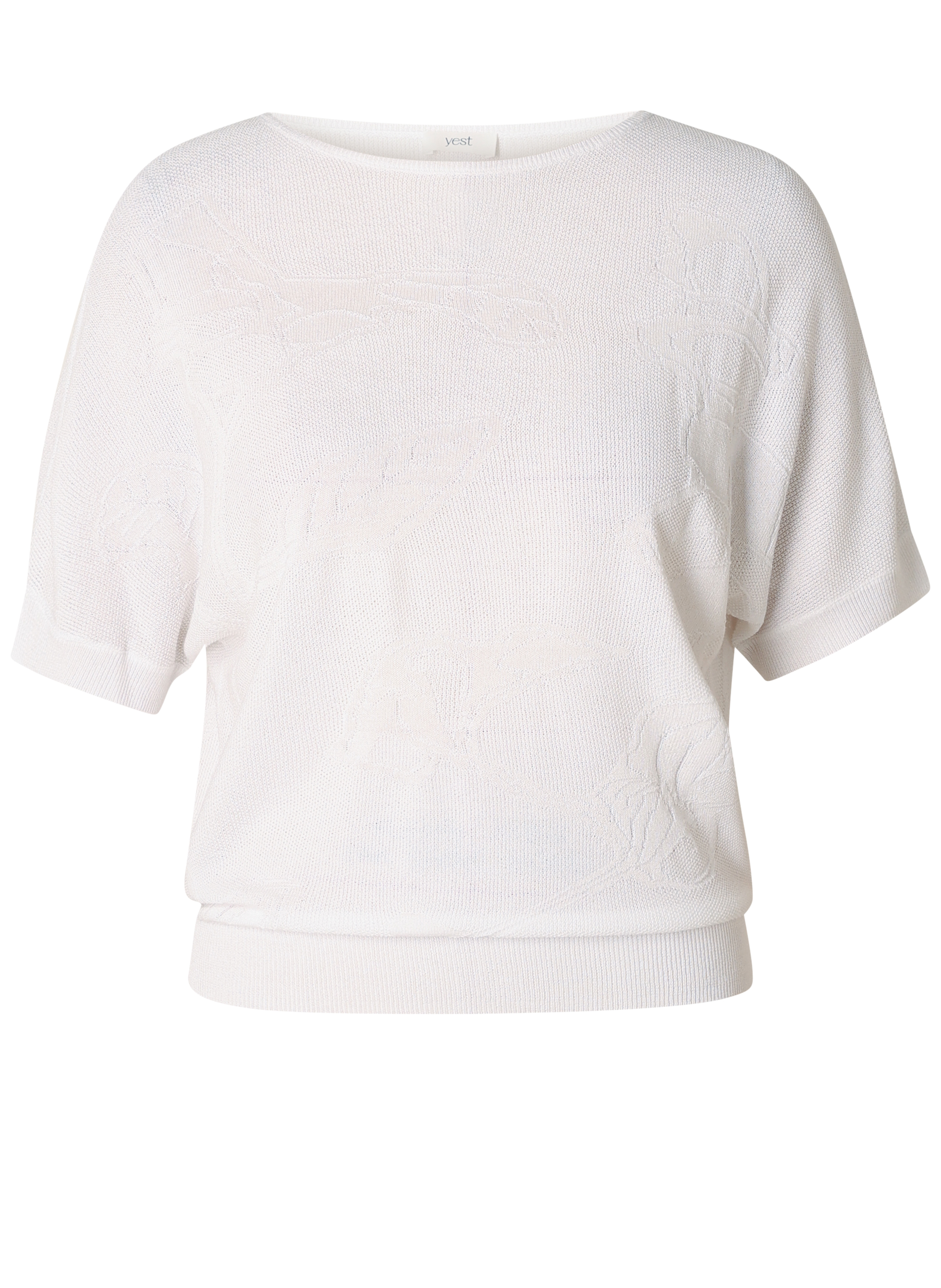 Deze Yest trui heeft een ontspannen "comfort fit" die voldoende ruimte biedt zonder wijd te ogen. Het ontwerp is voorzien van een elegante boothals en korte mouwen, wat het een ideaal item maakt voor warmere dagen. Subtiele structuurdetails in het breisel geven de trui een rustige en verfijnde uitstraling. Met een lengte van 58 centimeter is dit een veelzijdige top die prachtig staat op zowel een rok als een zomerse broek uit de collectie van Bagoes. De trui is verkrijgbaar in de frisse kleuren Off White en Pastel Green.