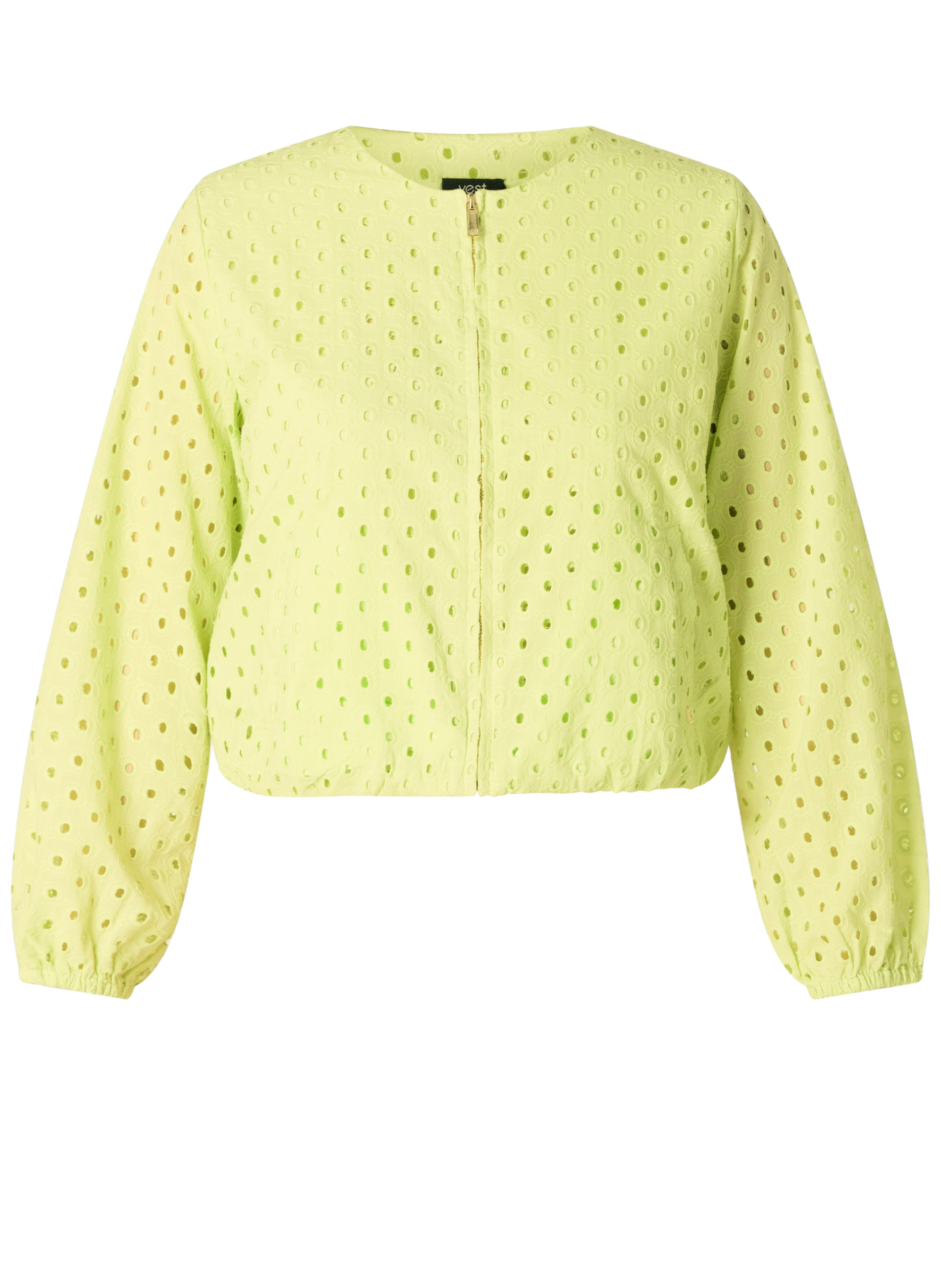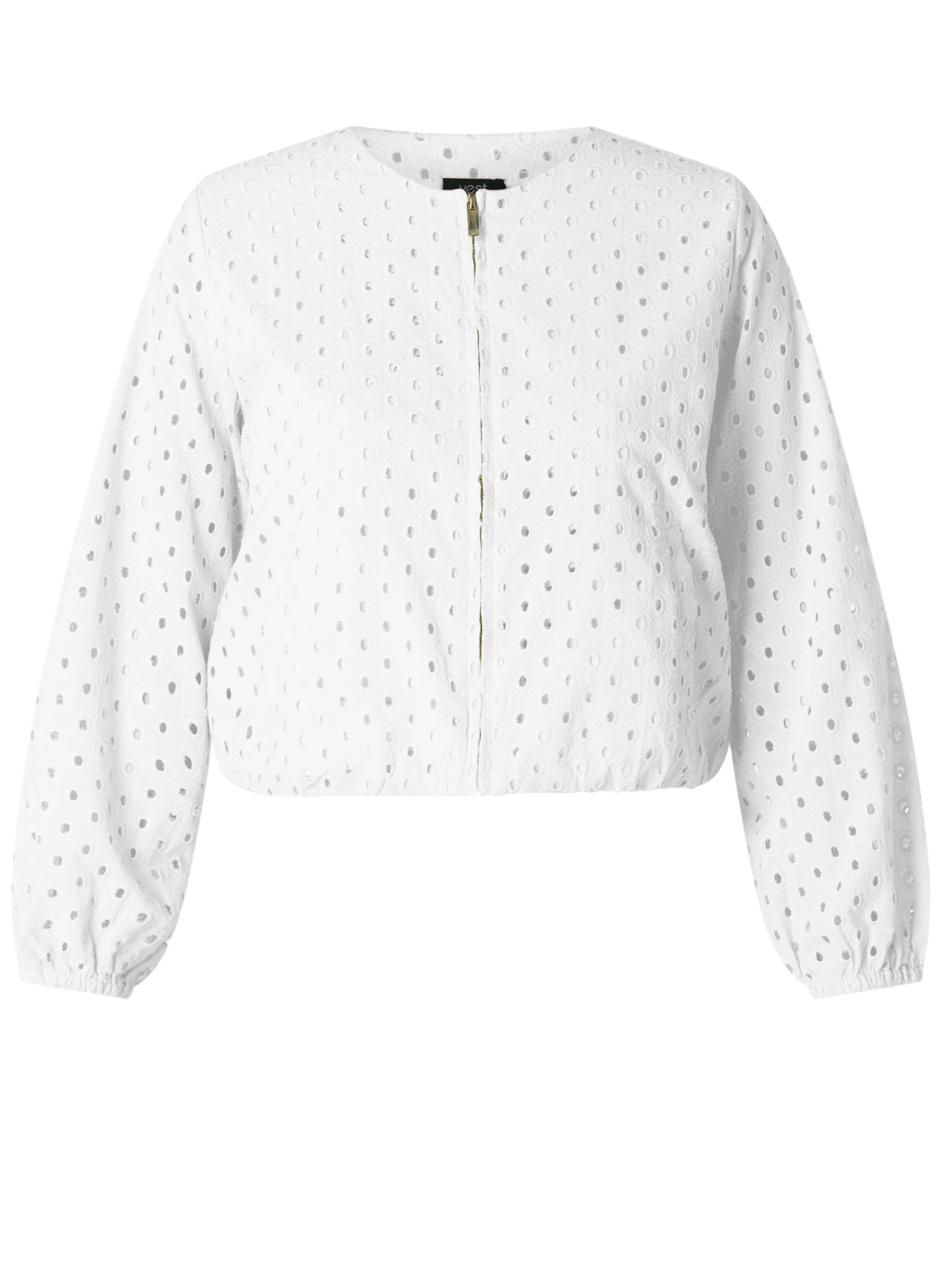 Dit jasje van Yest is gemaakt van een lichte stof met mooie broderie details. De elastische manchet aan de mouwen en de ritssluiting geven een nonchalante maar toch verzorgde uitstraling voor een zomerse dag of avond.