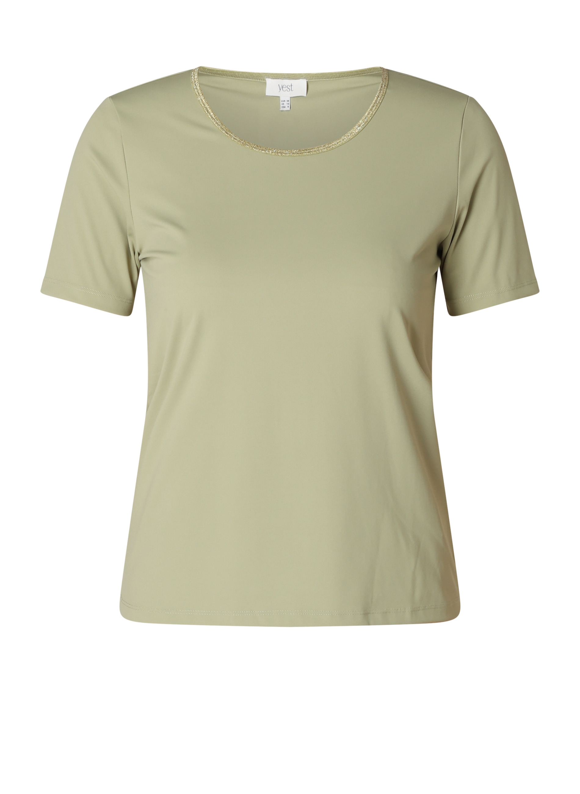 Bent u op zoek naar een comfortabele basic met een luxe touch? Dit prachtige Yest travel T-shirt is een uitstekende keuze voor dames die houden van modieuze grote maten kleding. Het merk Yest staat bekend om het ontwerpen van stijlvolle items met een fijne pasvorm voor vrouwen met een maatje meer. Dit shirt is gemaakt van een hoogwaardige travelkwaliteit (75% polyamide en 25% elastaan), waardoor de stof glad aanvoelt, heerlijk stretcht en nauwelijks kreukt.