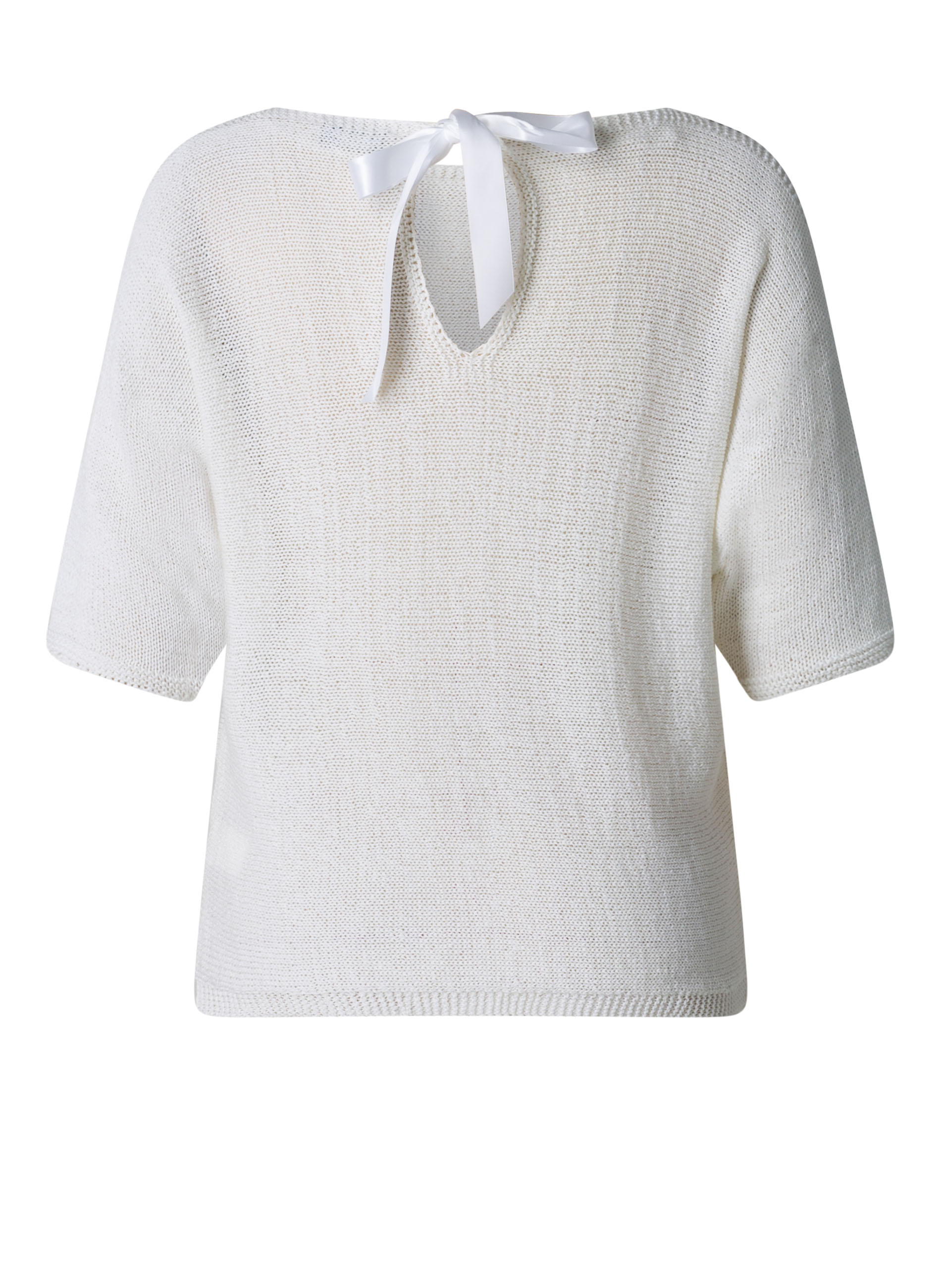 Deze trui van Yest is gemaakt van een mix van polyester en katoen. De trui heeft aangeknipte korte mouwen en een rechte halslijn. In de nek zit een leuke strik als detail. Een comfortabele en vrouwelijke top voor warme dagen!