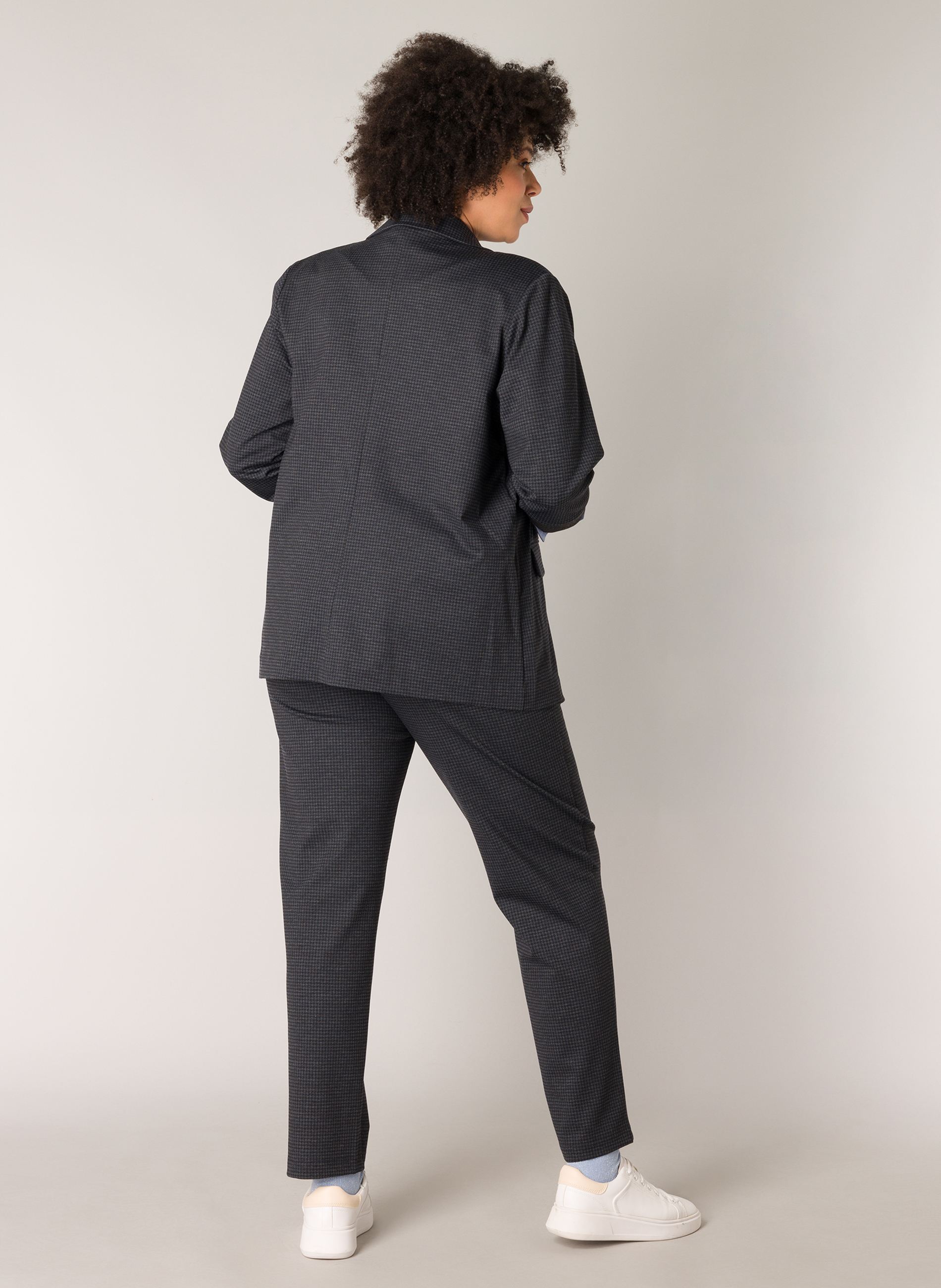 Blazer van Yesta uitgevoerd in een soepele jersey in een klein ruitje. Het getailleerde model is ongevoerd en heeft een knoopsluiting en 2 klepzakjes aan de voorzijde. Goed te combineren met pantalon A004123 (Roselinde) in dezelfde stof. De Rafke is 74 cm lang. Je vindt meer blazers in de categorie grote maten blazers.