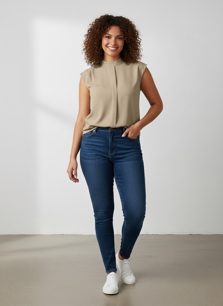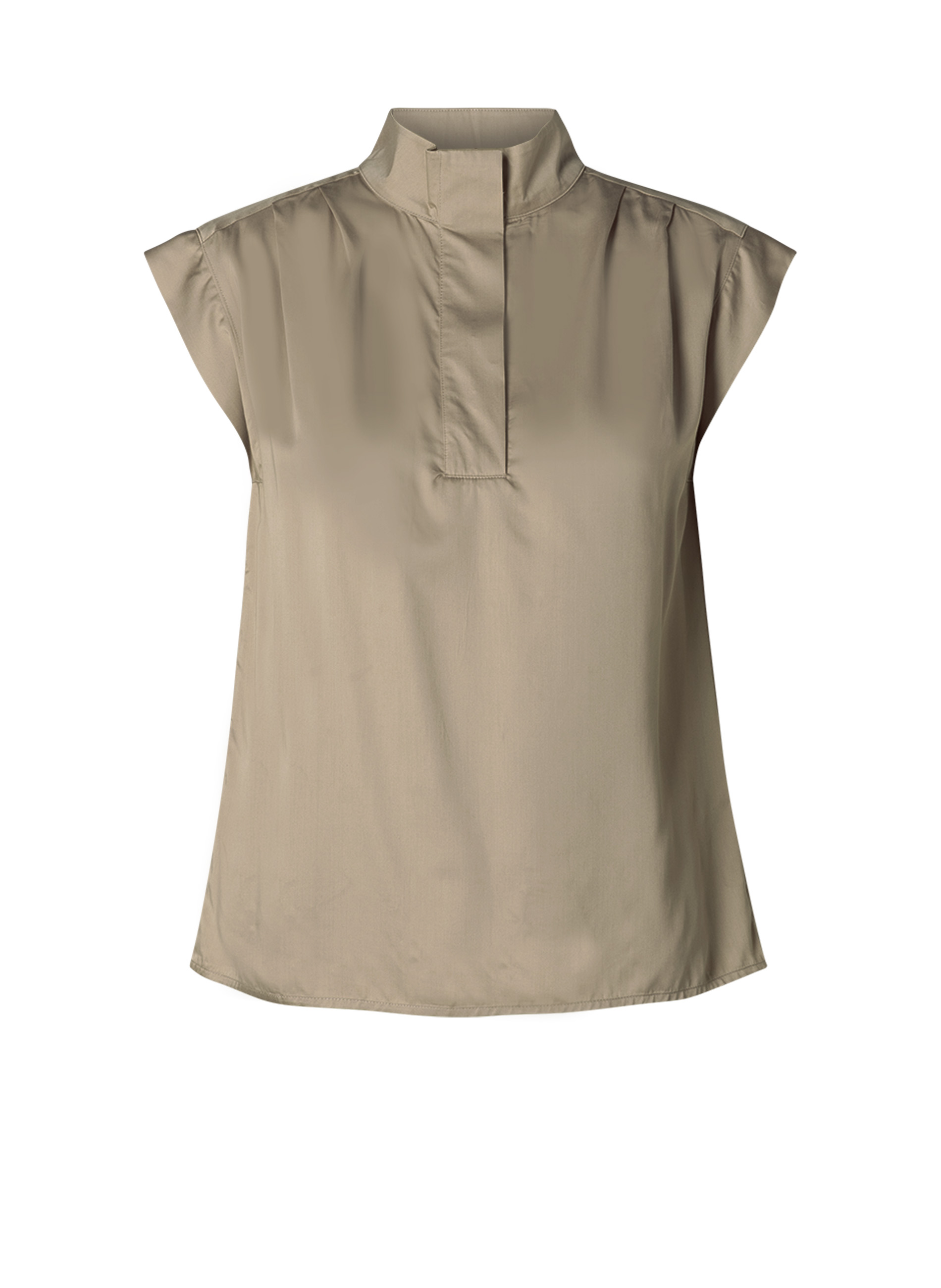 Zachtglanzende mouwloze top met een iets bredere schouder met plooien. De opstaande kraag sluit met (blinde) knooopjes. De Berly van YESTA heeft een Regular Fit en is gemaakt van 70% Viscose en 30% Tencel. Deze top is verkrijgbaar in Grey Rose en Soft Army. ​Je vindt meer shirts in de categorie grote maten shirts.
