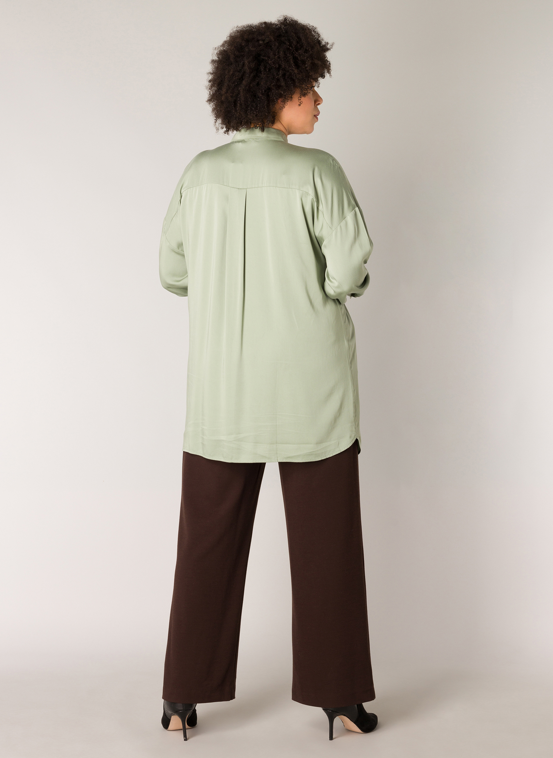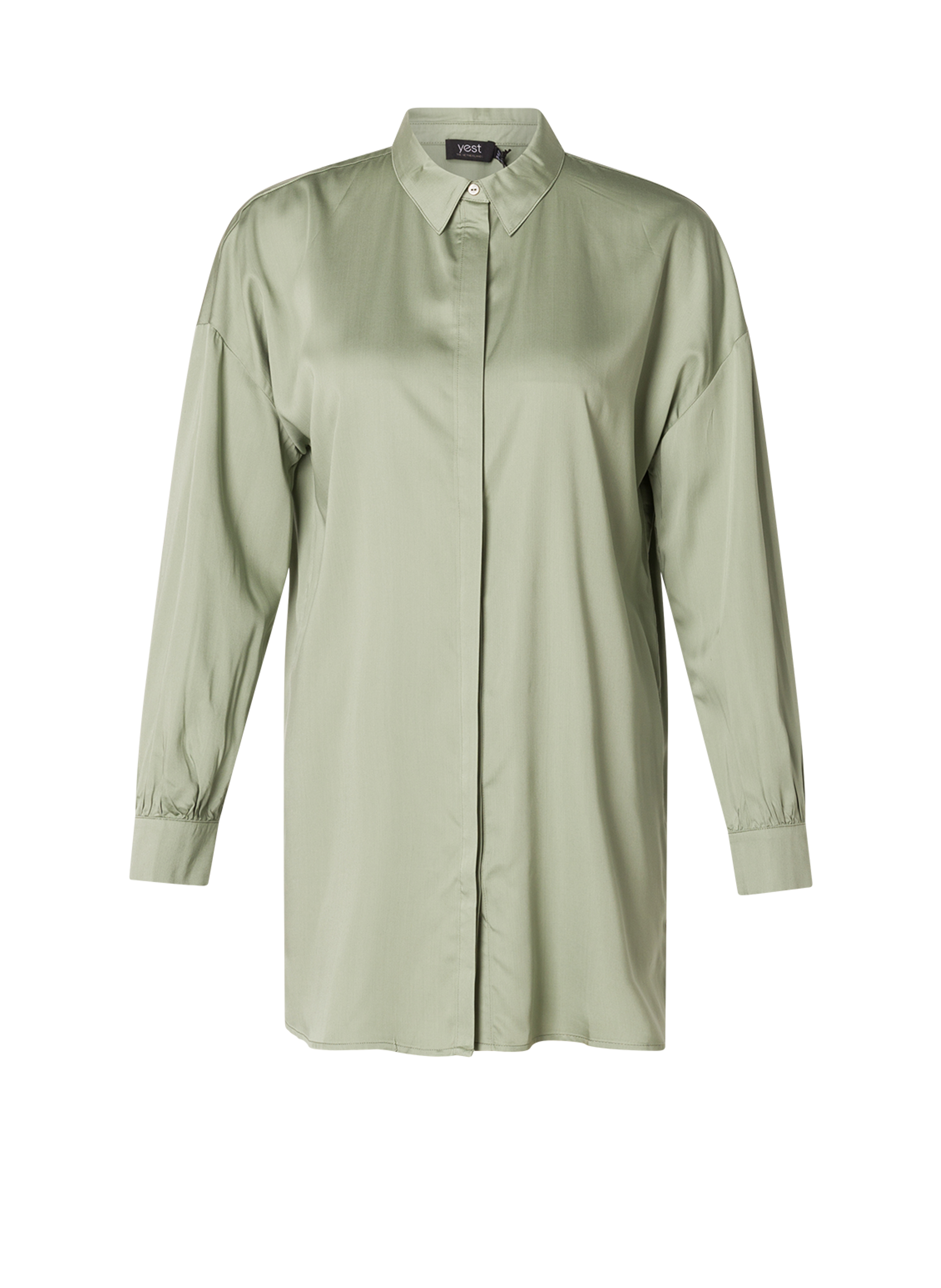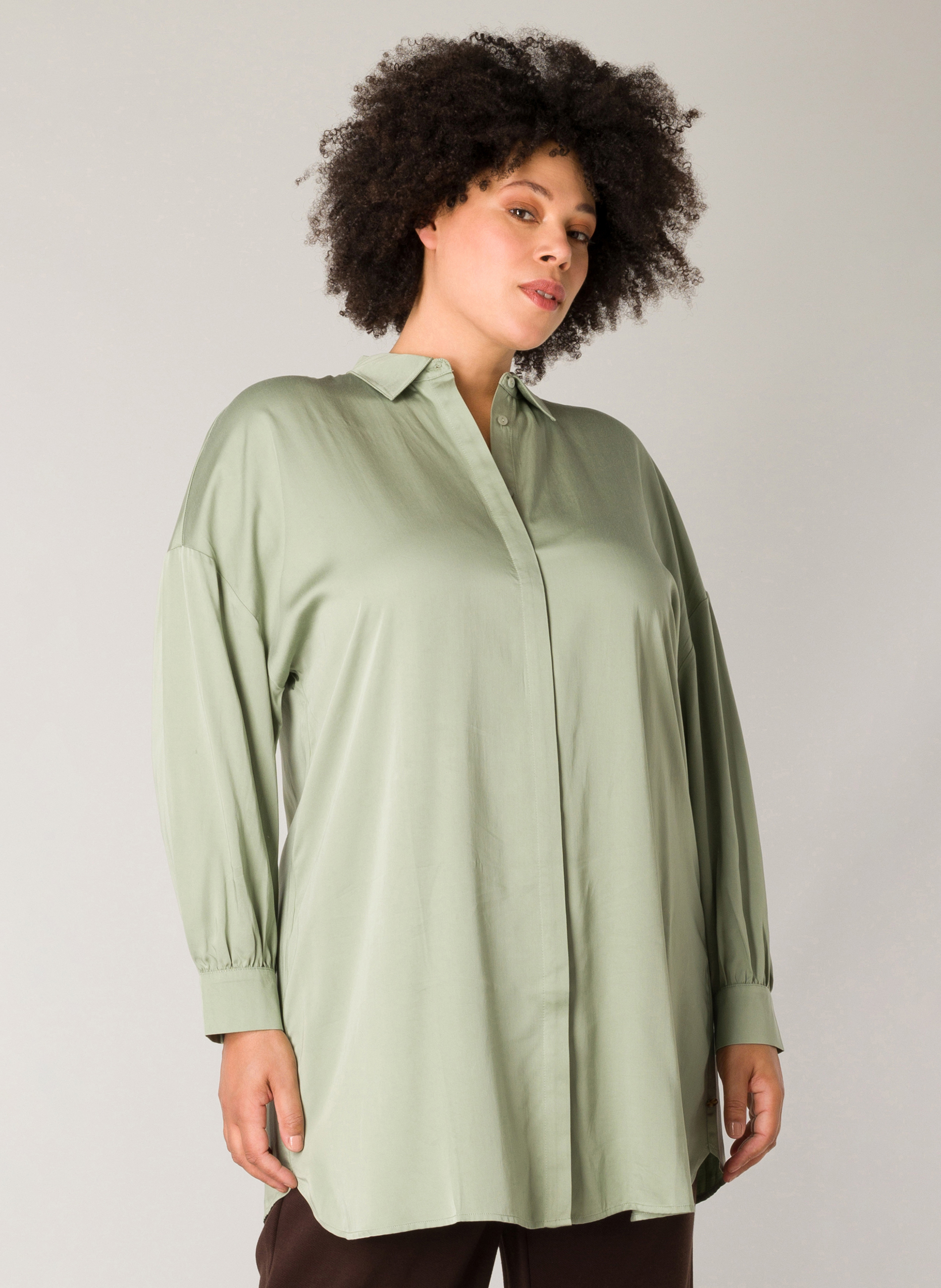 De Ruby van Yesta is een zachtglanzende lange blouse in een regular fit. Deze blouse heeft een kraag en een blinde knoopsluiting. De onderkant van de blouse loopt rond weg. Verkrijgbaar in de kleuren Black, Grey Olive en Night Blue. Lengte 90 cm. De mooiste blouses vindt je in de categorie grote maten blouses.