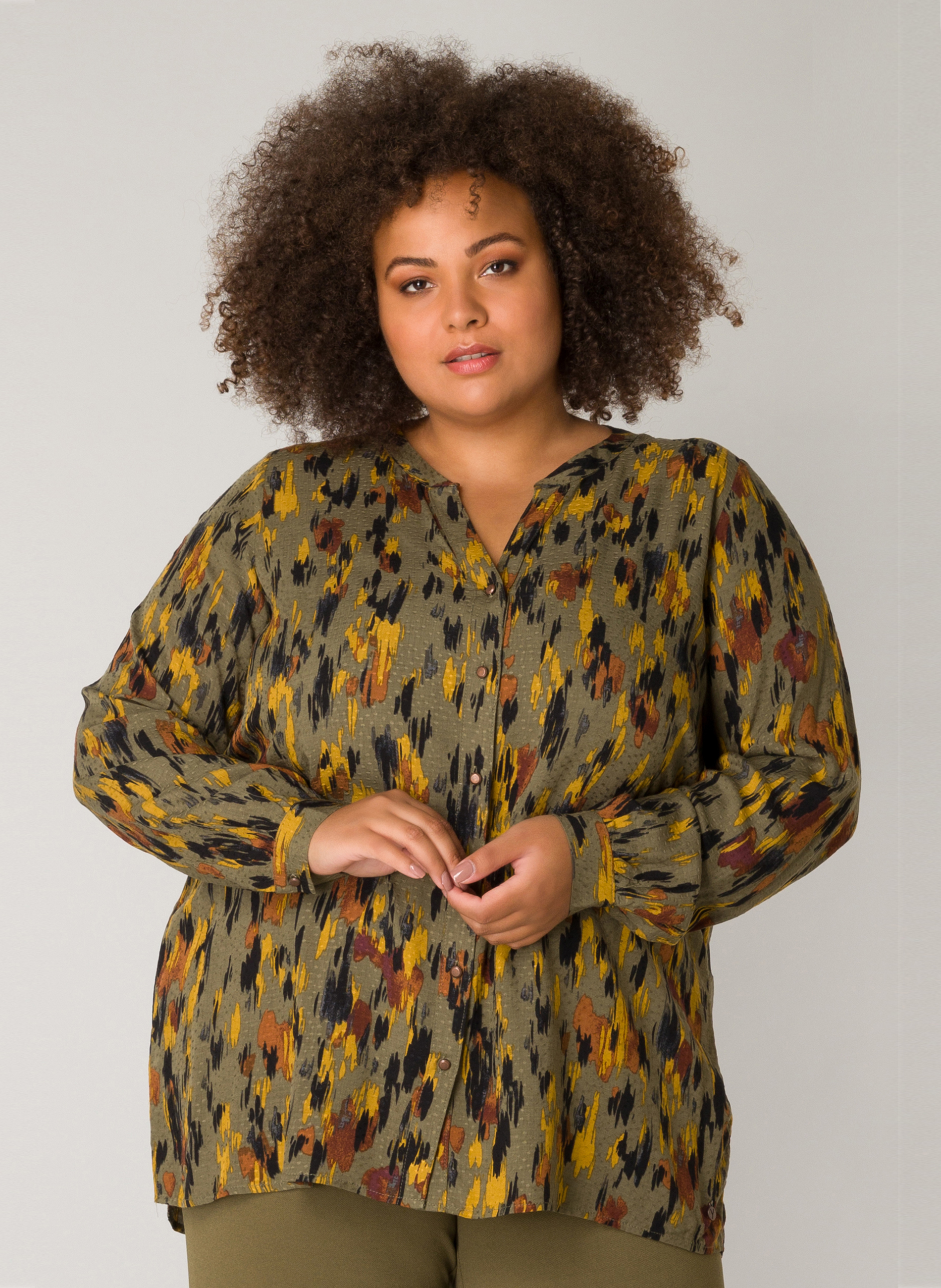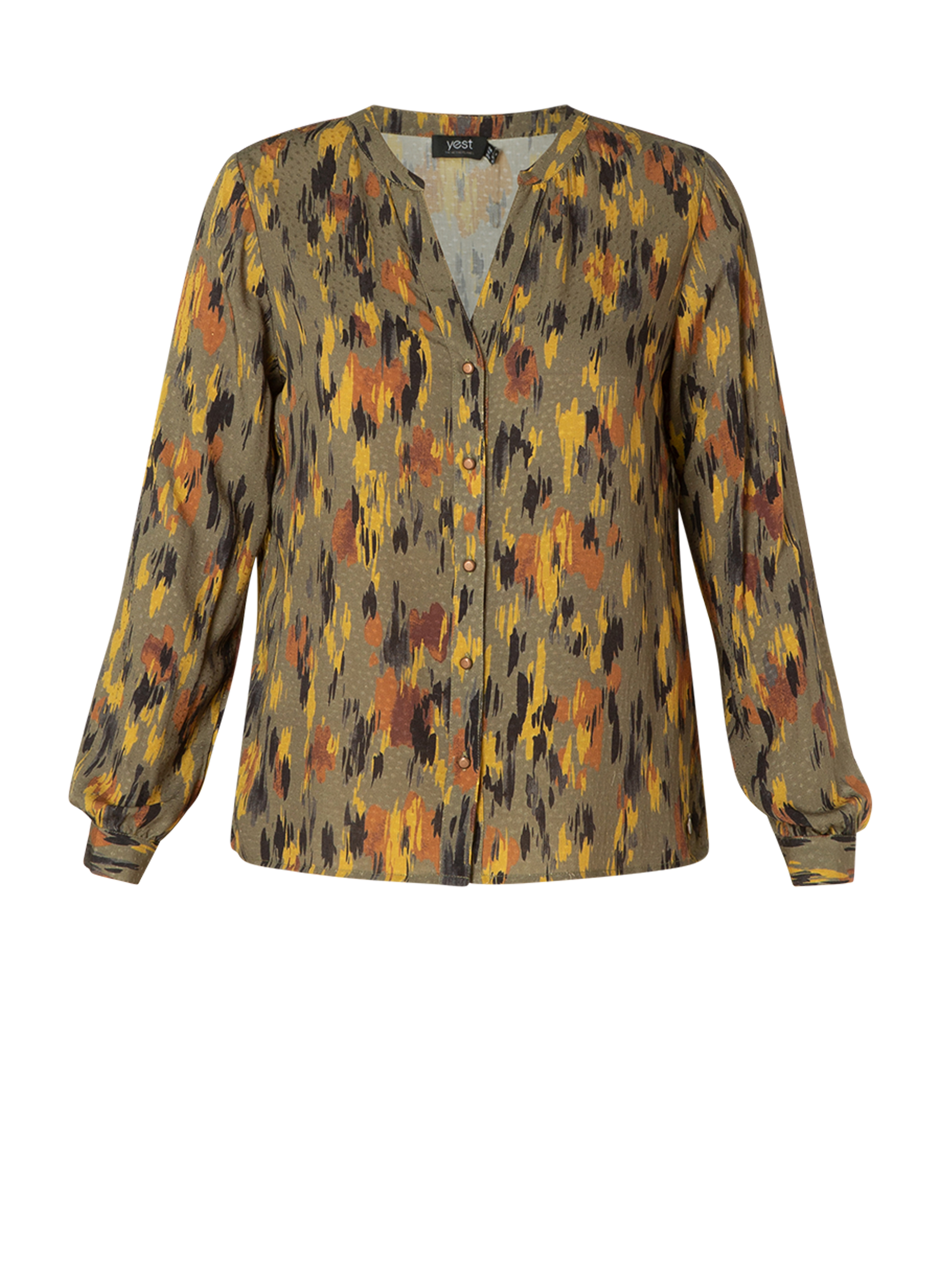 Dit is de YESTA blouse Vittoria Essential. Het is een viscose printblouse in een regular fit. De ronde neklijn loopt door in een v-hals en sluit met kleine knoopjes. De Vittoria heeft lange mouwen met een manchet. De Vittoria Essential van YESTA heeft een Regular Fit en is gemaakt van 100% Viscose. Deze Blouse is verkrijgbaar in de kleur Army Green/Multi-Color. De mooiste blouses vind je in de categorie grote maten blouses. De blouse heeft een lengte van 78 CM in maat 2.