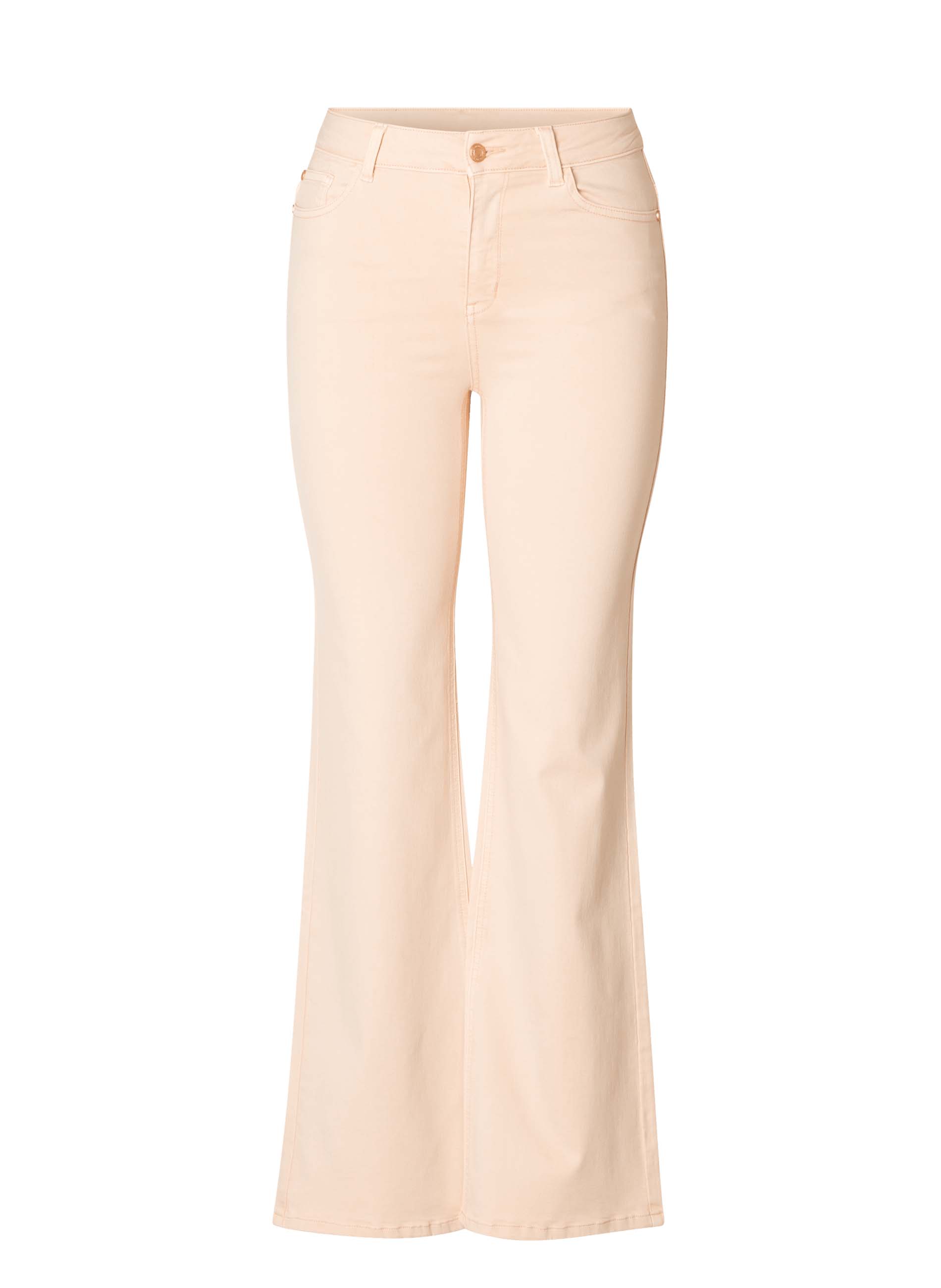 Yesta Flared jeans Hera met een hoge tailleband in zachtroze denim. 5 Pocketmodel met een sluiting met een rits en een knoop. Door de toevoeging van elastan heeft deze broek een heerlijke fit. De Hera Essential van YESTA heeft een Flare Fit.