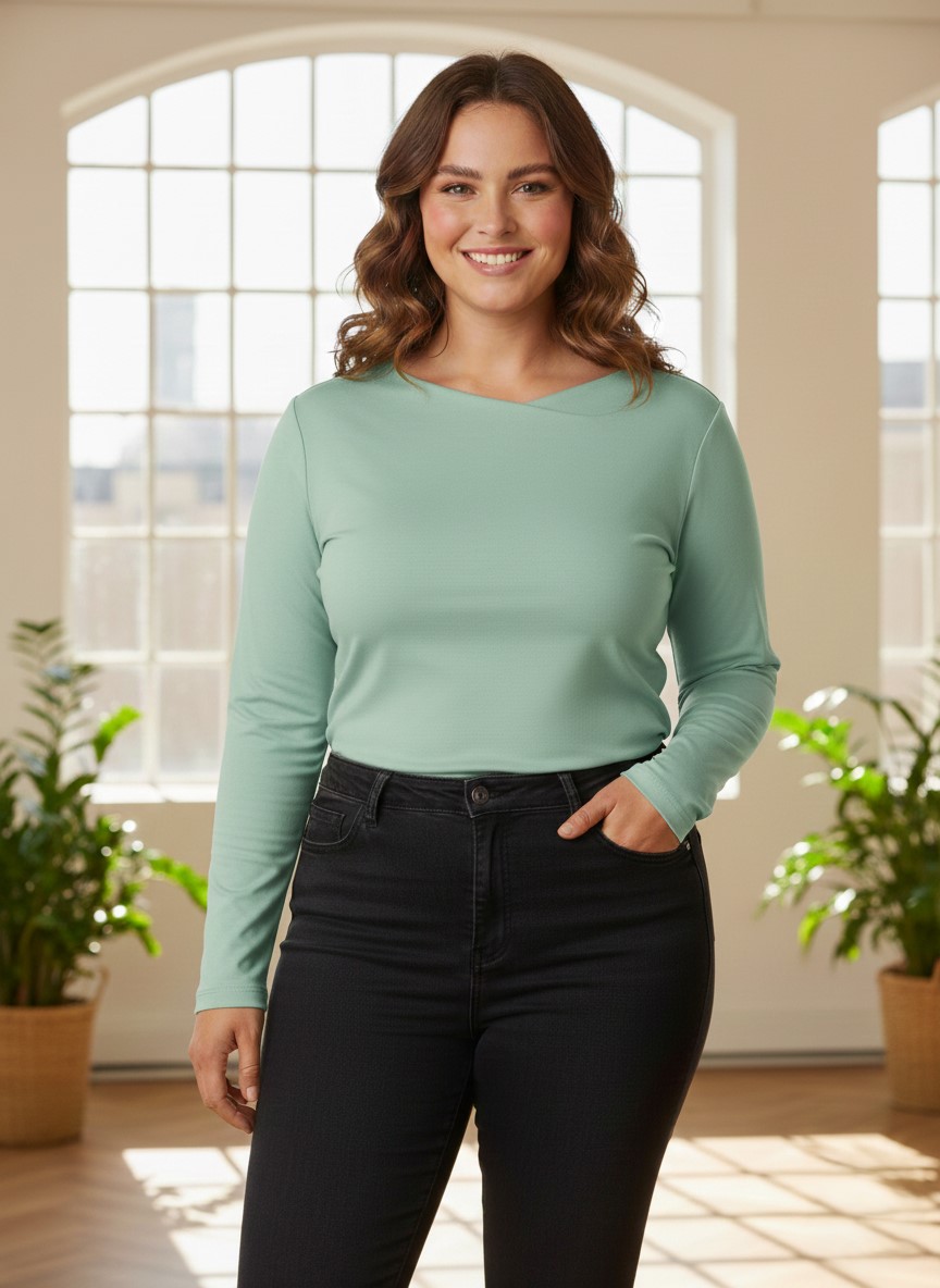 Yesta t-shirt met A-symetrische halslijn in een slim-fit. De Rosally is verkrijgbaar in 5 kleuren. Lengte 72 cm. ​Je vindt meer shirts in de categorie grote maten shirts.
