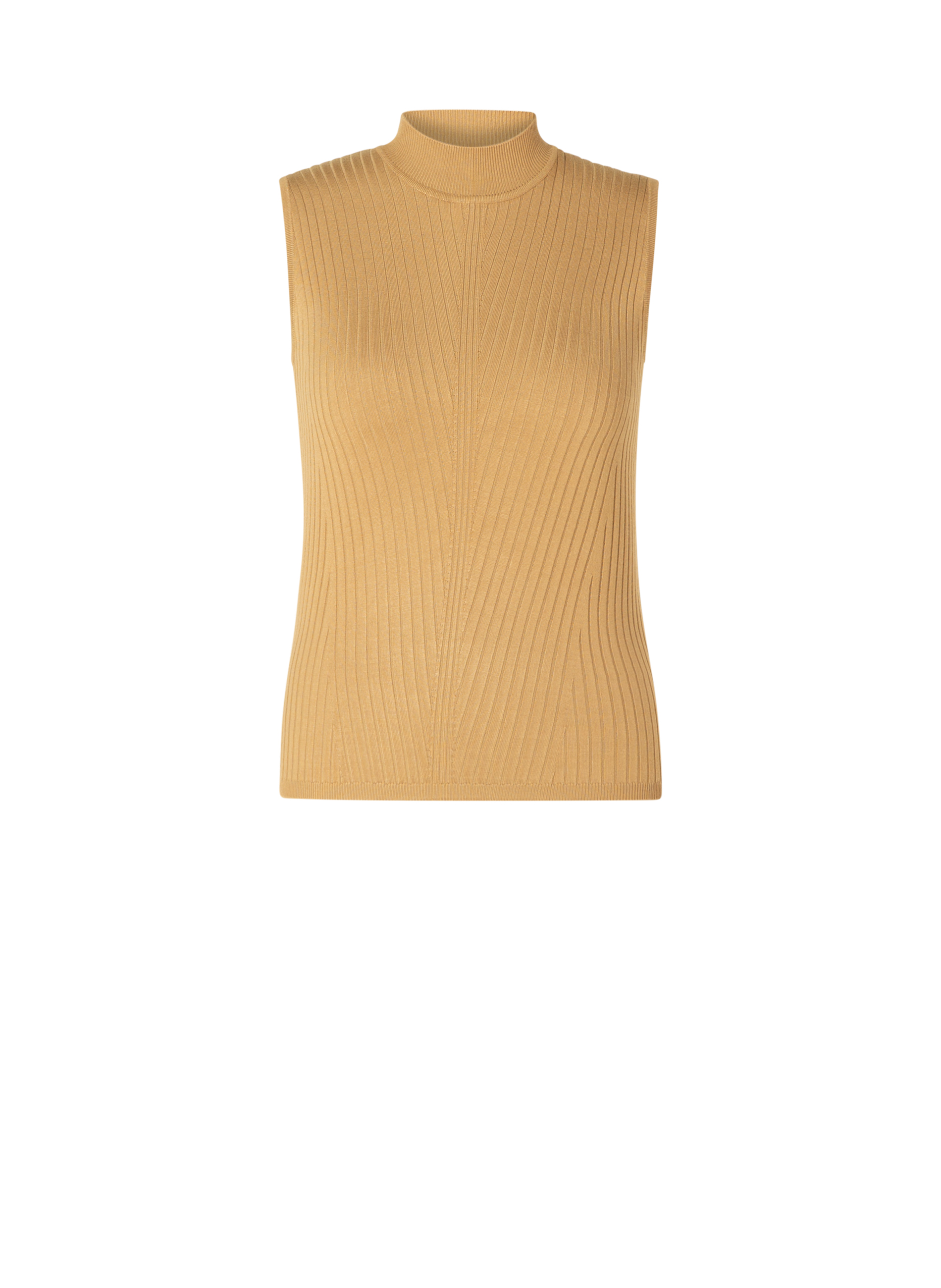 Dit is de Venetia van het merk YESTA. De mouwloze top heeft een zacht ribbreisel. Deze top heeft een turtle neck. De Venetia van YESTA heeft een Slim Fit en is gemaakt van 80% Viscose en 20% Nylon. Deze Top is verkrijgbaar in de kleuren Kit en Red Brown. De lengte van de top is 70 cm.