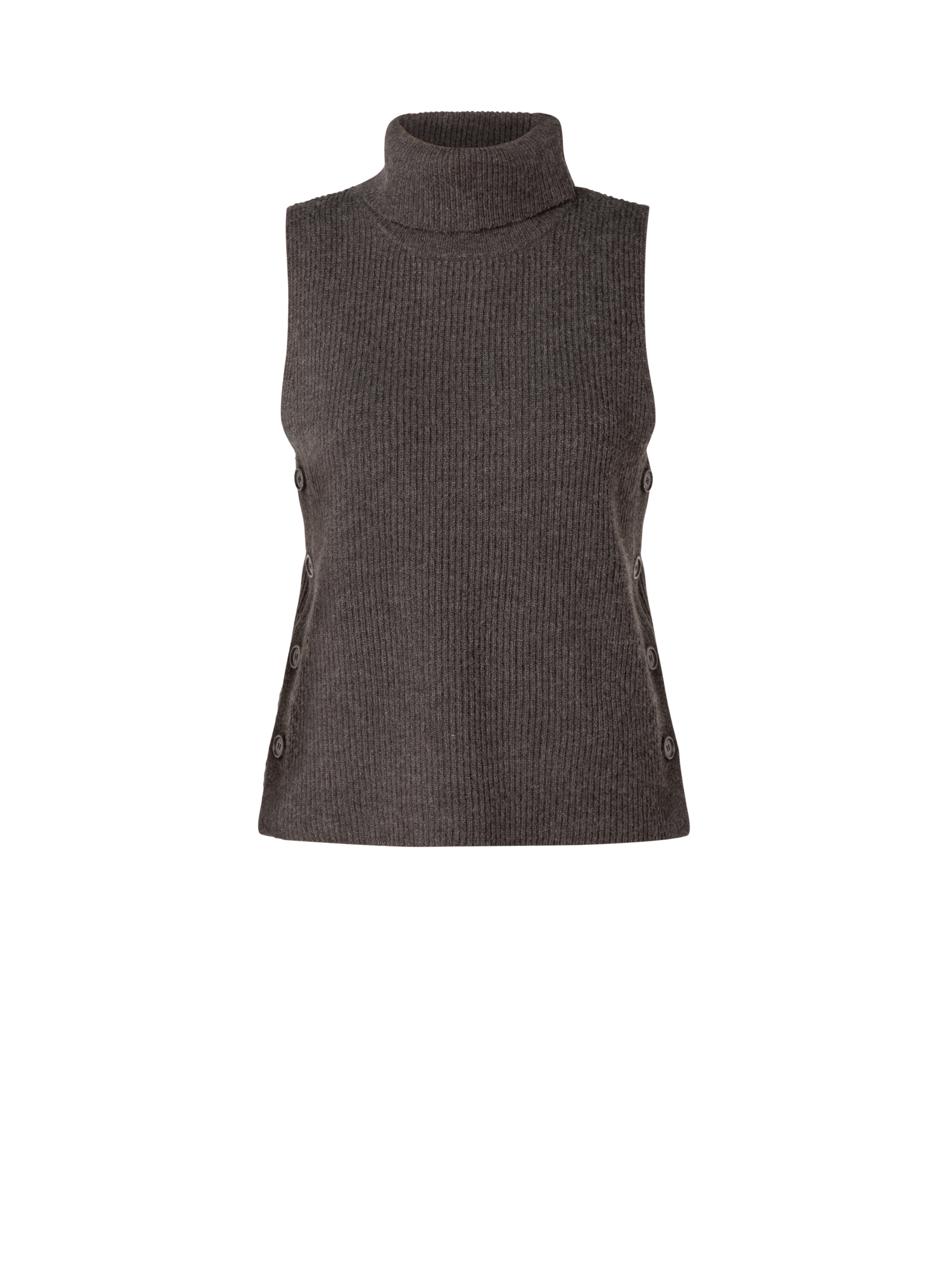 Mouwloze gebreide trui met een col met een omslag. Langs de zijnaad een knopenrij. De Baylynn van YESTA heeft een Comfort Fit en is gemaakt van 50% Acryl, 28% Polyester en 22% Nylon. Deze trui is verkrijgbaar in Dark Grey/Melange. De mooiste truien vindt je in de categorie grote maten truien.