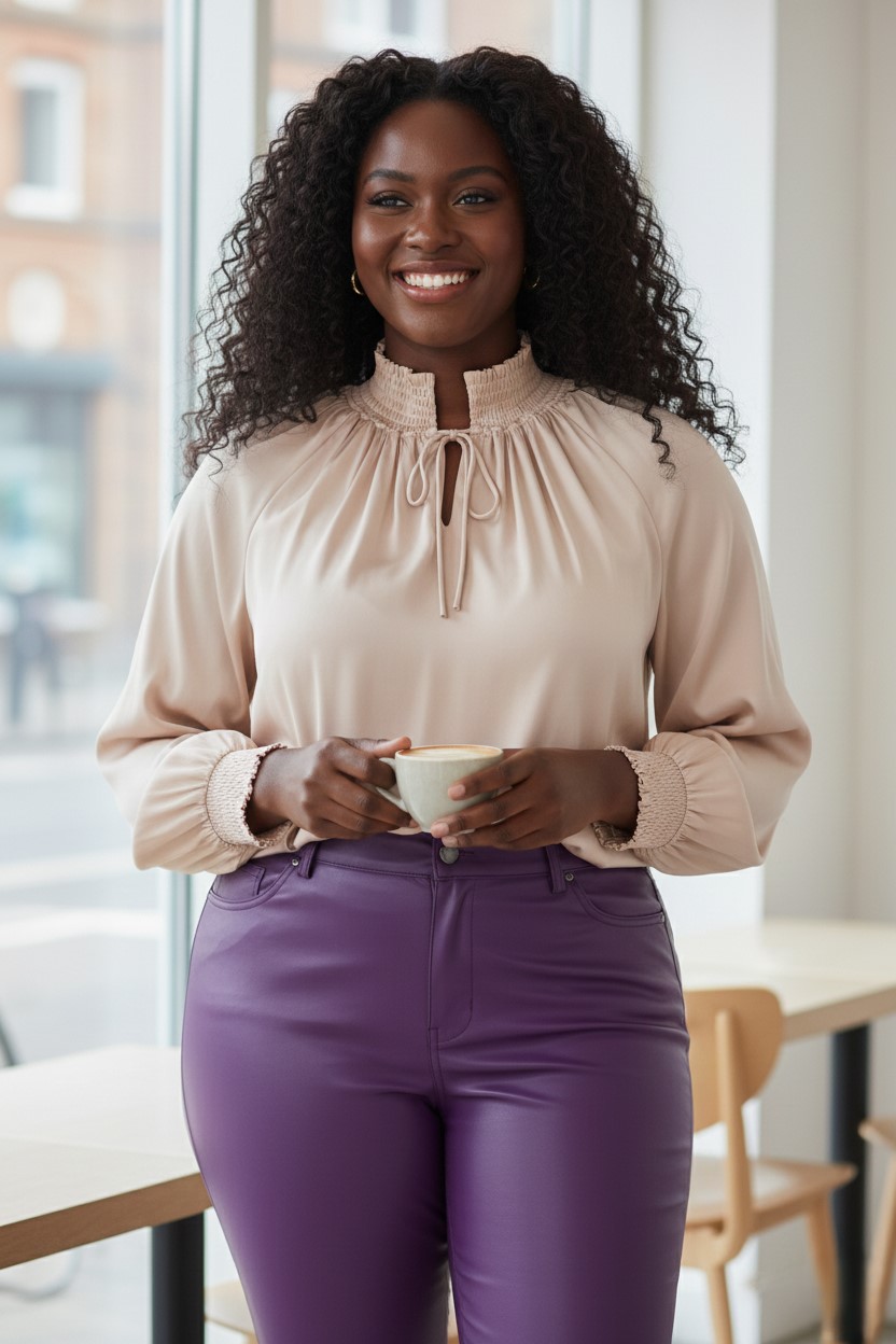 Yesta tuniek Welmoed is een glanzende tuniek gemaakt van 63% gerecycled polyester. Deze tuniek biedt een comfortabele pasvorm met een gesmokte opstaande kraag en een striklint voor een stijlvolle touch.