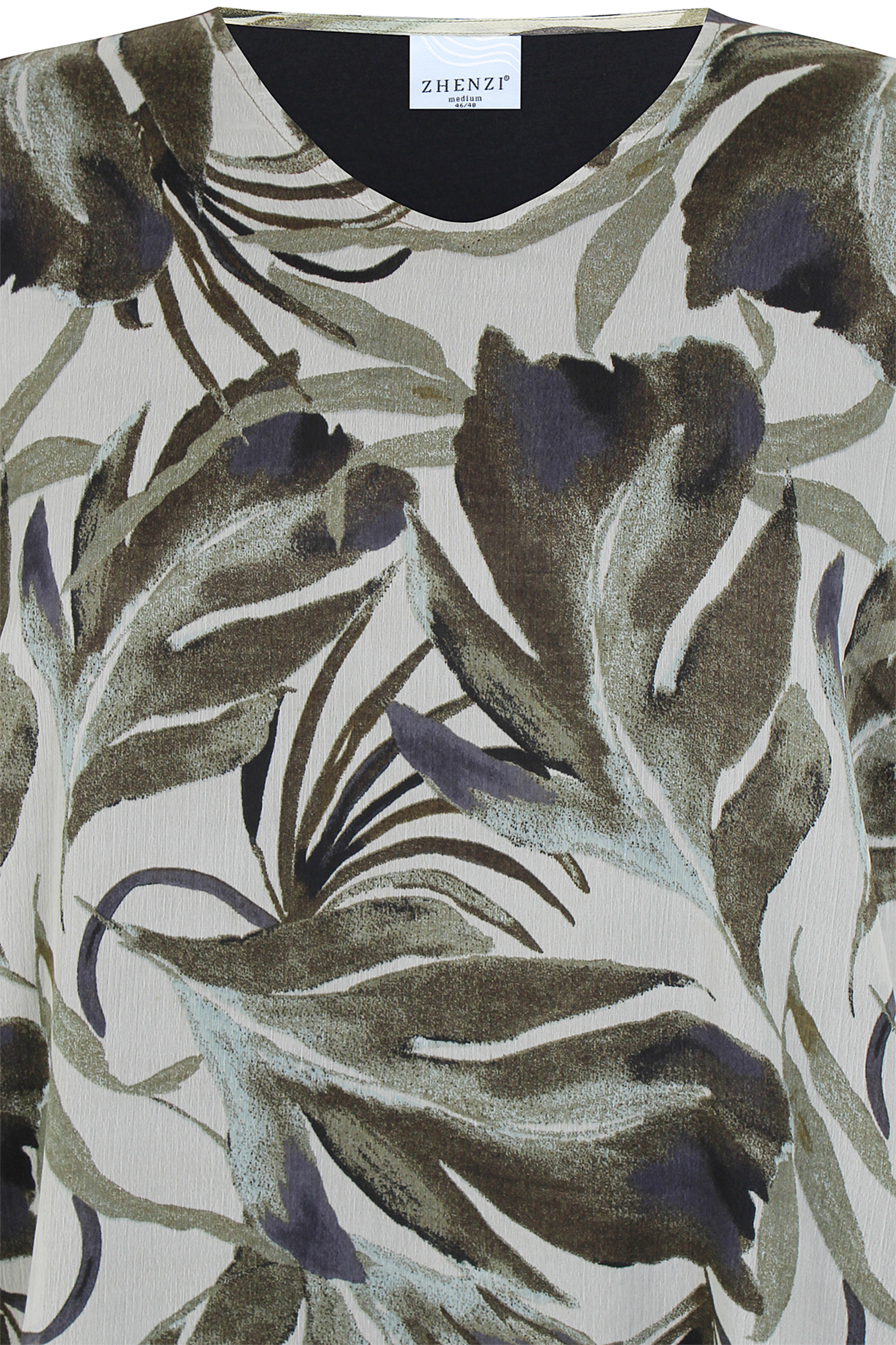 ZHENZI a-lijn tuniek bladprint | 2010435855M=46-48