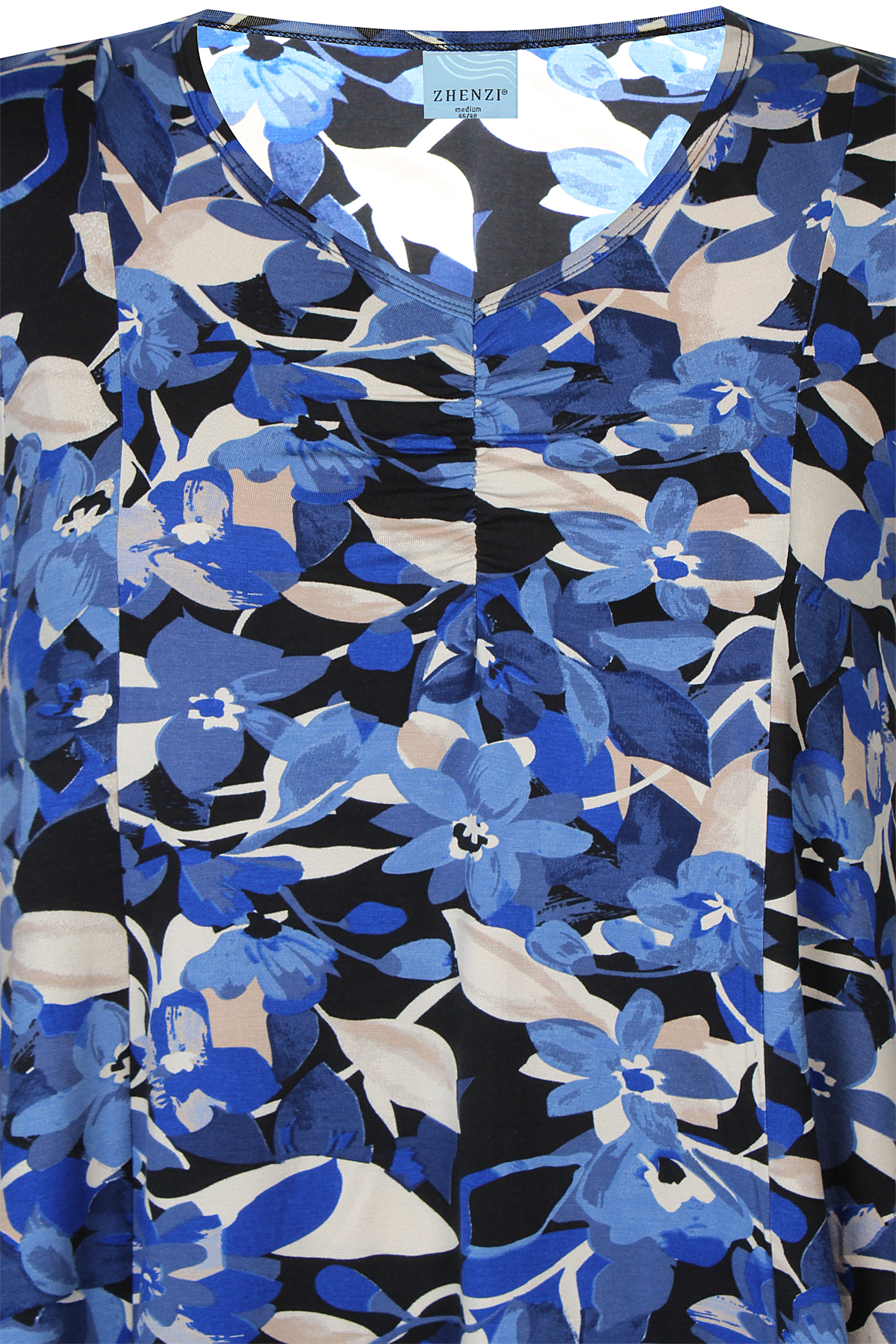 ZHENZI bloem print v-hals jurk Saki | 2010265855M=46-48