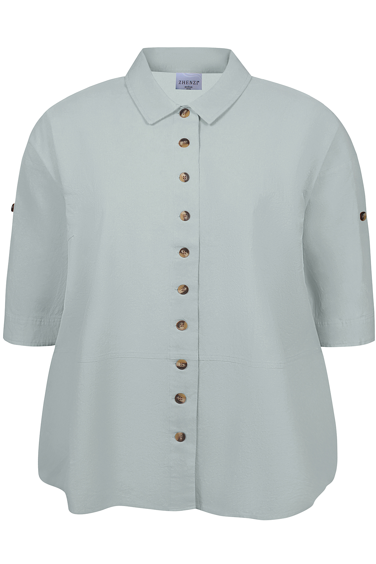 De blouse is voorzien van een klassieke kentkraag en een button down sluiting aan de voorkant. De mouwen zijn oprolbaar en vast te zetten met een knoop, waardoor je eenvoudig kunt variëren in stijl en draagmoment.