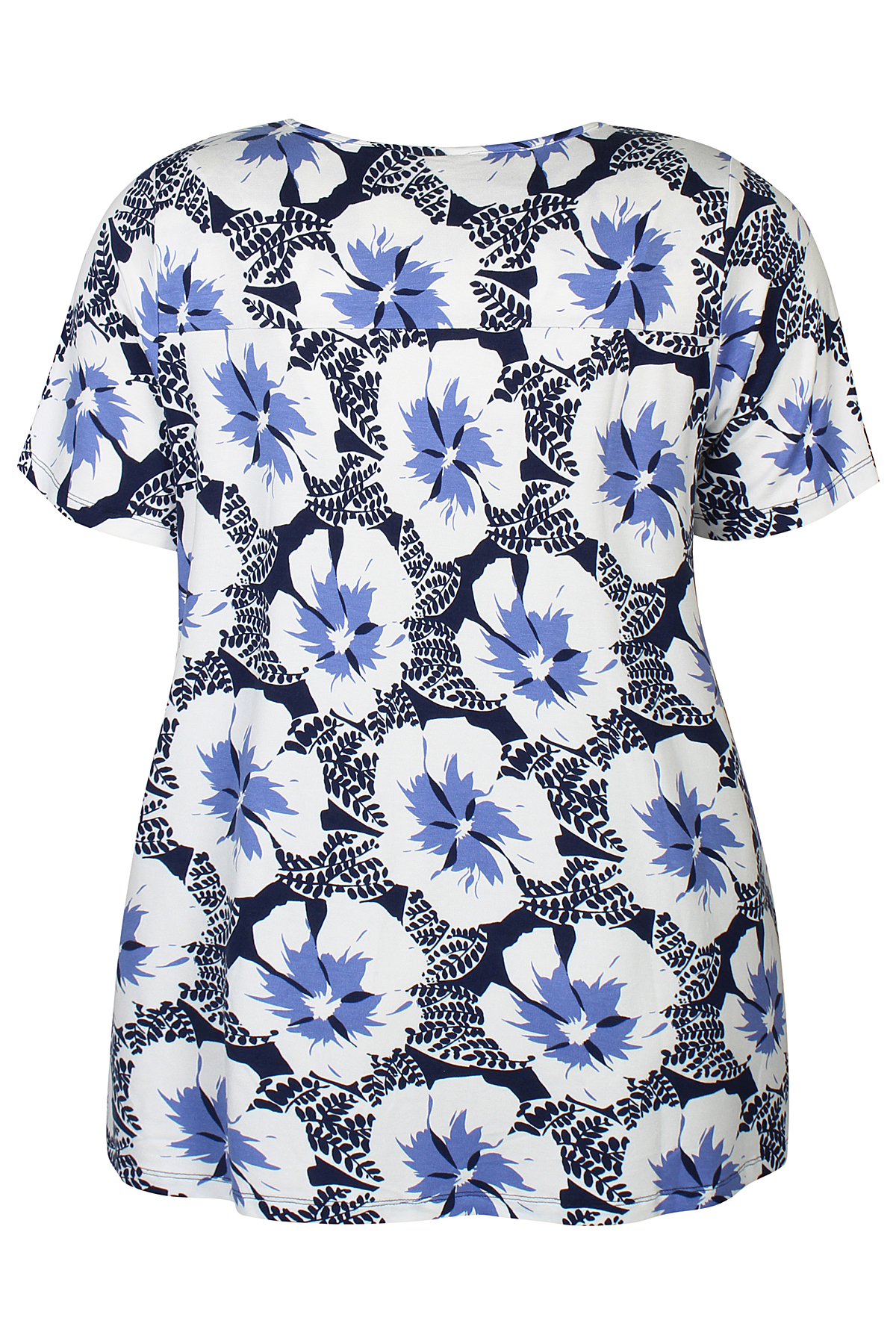 De witte basis met een allover blauwe bloemenprint geeft het shirt een vrolijke en vrouwelijke uitstraling. De V halslijn is rekbaar en geplooid, wat zorgt voor een speels effect en extra draagcomfort. Dankzij de fijne pasvorm is dit shirt ideaal voor dagelijks gebruik.