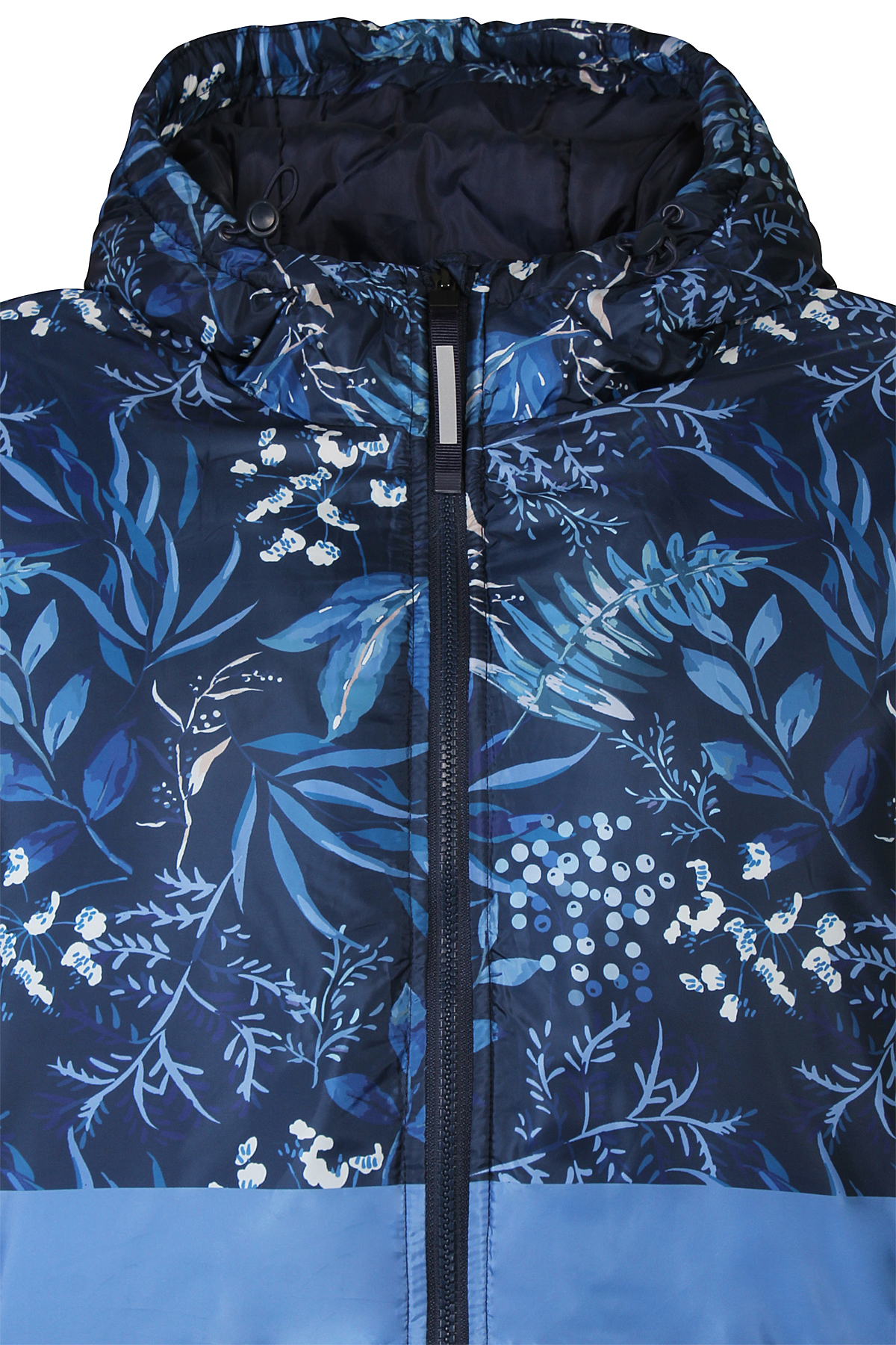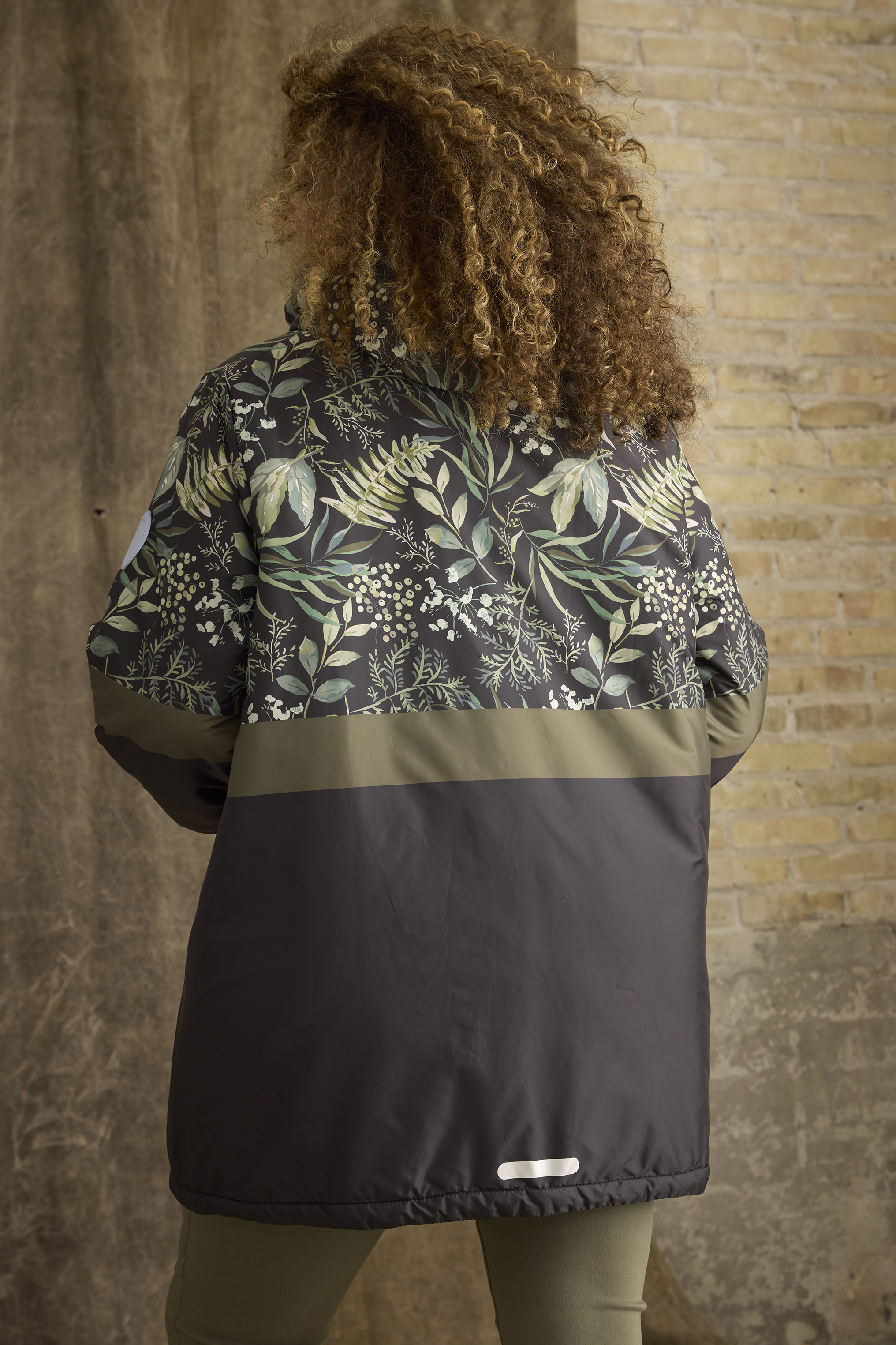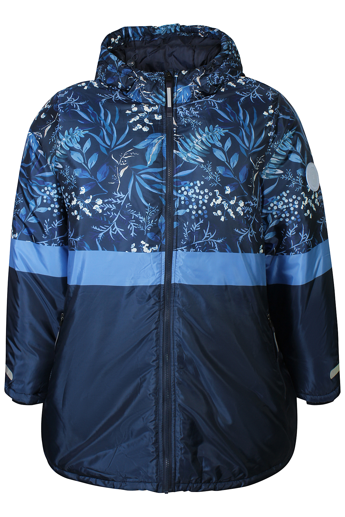 Deze jas Nana van Zhenzi combineert functionaliteit met stijl en biedt bescherming tegen kou en regen. Het bovenste gedeelte heeft een floraal patroon op een donkere stof, terwijl het onderste deel zwart is met een  horizontale strook. De jas is voorzien van een verstelbare capuchon. De mouwen zijn elastisch afgewerkt voor betere isolatie, en de jas heeft een ritssluiting met een windvanger. De mouwen zijn bovendien voorzien van ingevoerde manchetten, die extra warmte bieden door het afsluiten van de mouwopening. Reflecterende details zorgen voor zichtbaarheid in het donker en praktische zijzakken met ritssluiting. Met een licht oversized pasvorm is deze jas perfect voor zowel actieve als casual buitenactiviteiten.