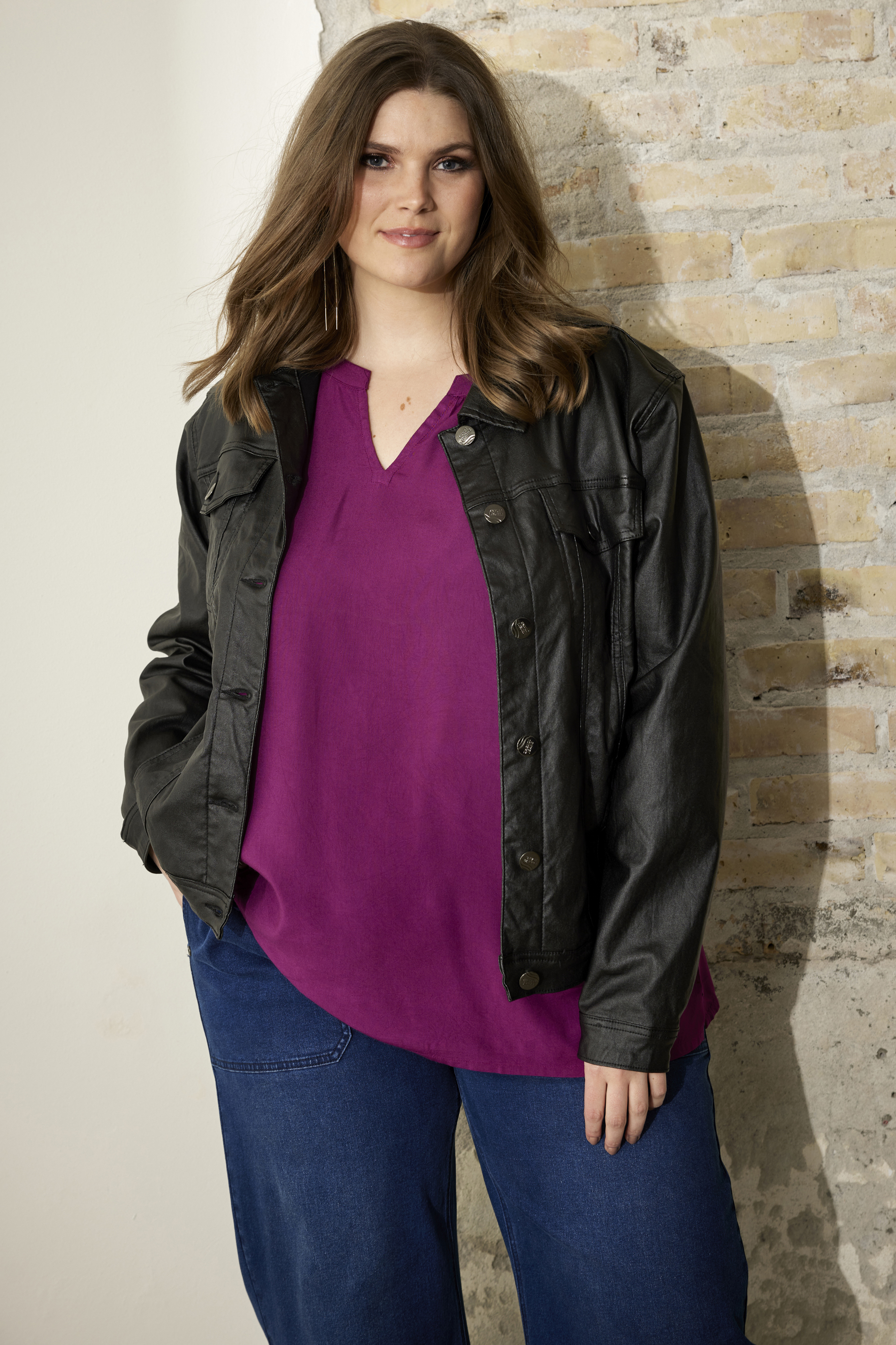 ZHENZI jasje Twist is gemaakt in een leatherlook stof met een goede rek. Het is een korter model met klepzakken en steekzakken. Voor de Feestelijke momenten combineer je hem met een glitter top. Wil je een wat stoerdere look draag hem dan bij een jeans.