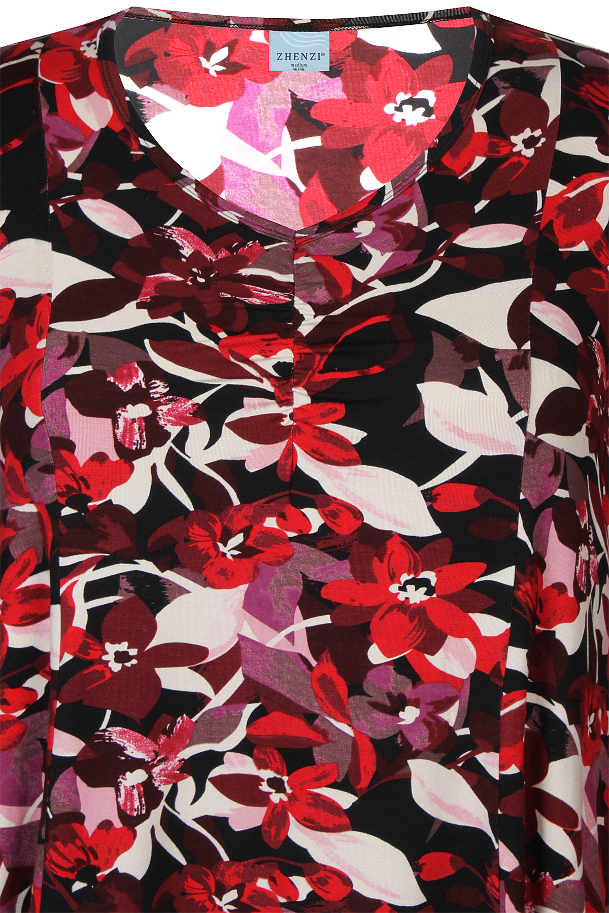 ZHENZI bloem print v-hals jurk Saki | 201026maroM=46-48