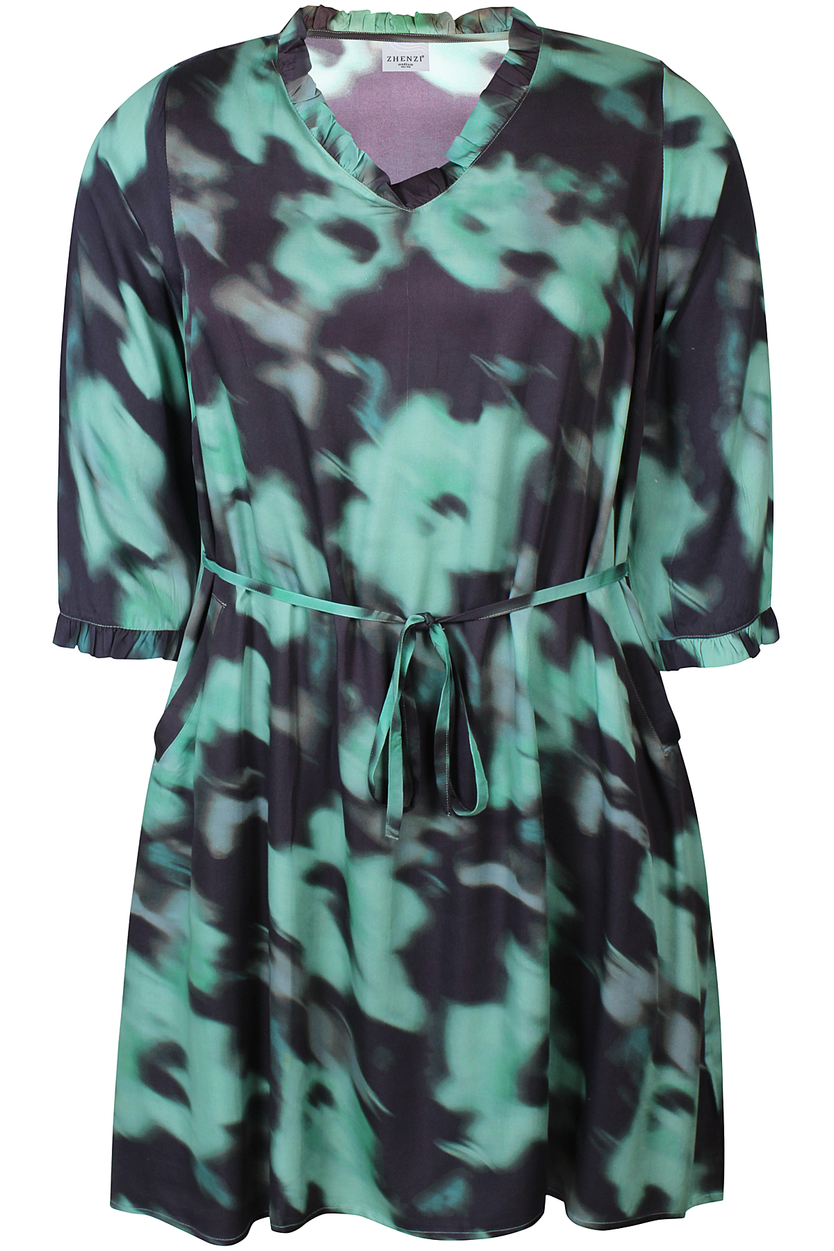 De ZHENZI jurk Vera is een elegante en veelzijdige jurk in een levendige teal green en warme sand kleur. Gemaakt van 100% viscose, voelt de jurk zacht en ademend aan, ideaal voor dagelijks gebruik én bijzondere momenten. De jurk heeft een apparte roezel langs de halslijn en als manchet.