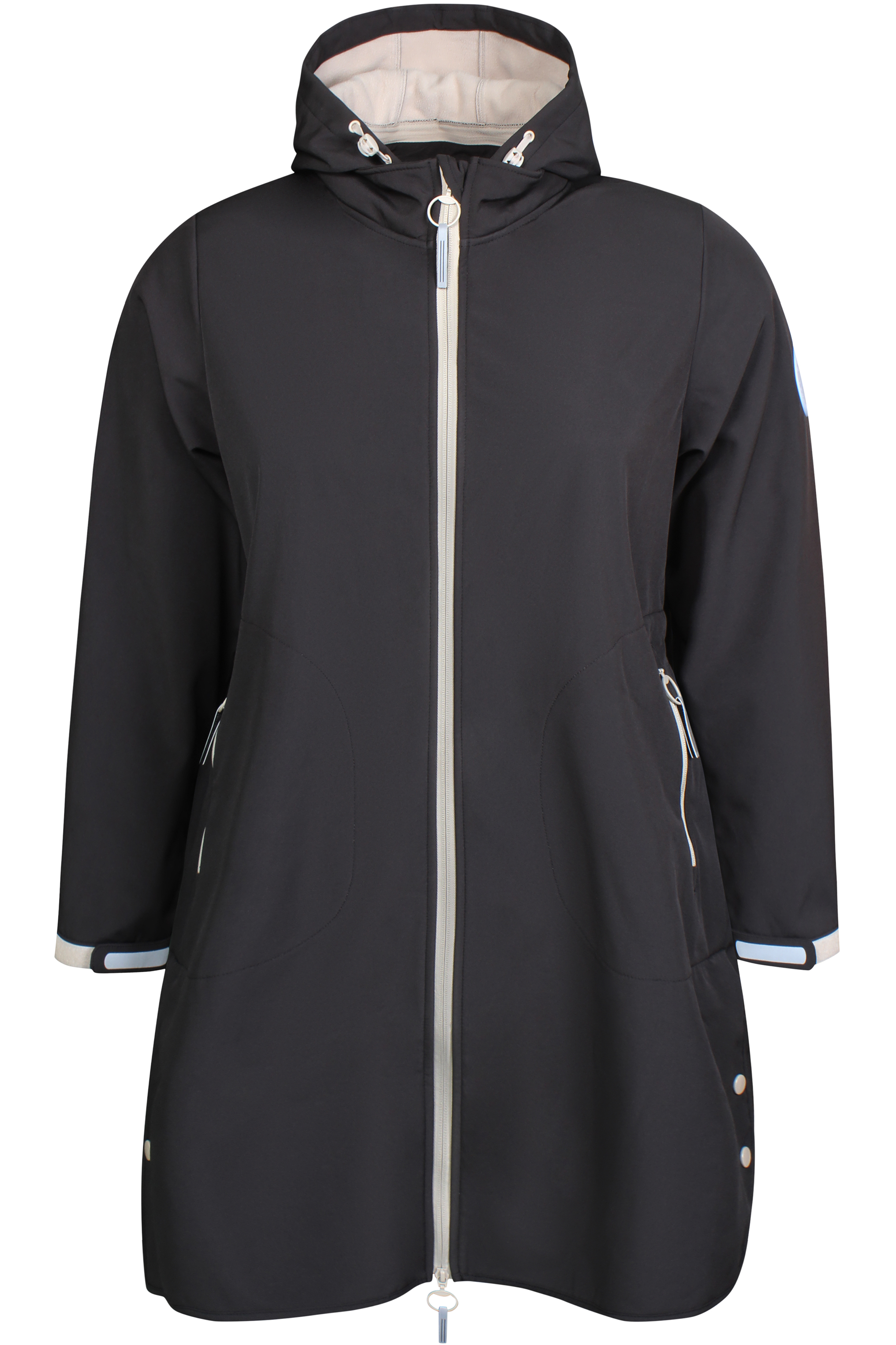 De Della is een heerlijke soft cell jas van Zhenzi. De jas heeft een losse pasvorm en is rekbaar.Voor comfort een rechte snit, een tweewegritssluiting en splitten aan de zijkanten. De jas heeft steekzakken met ritssluiting. Klitteband met reflecterende details op de mouwen, zodat je dit kan aanpassen