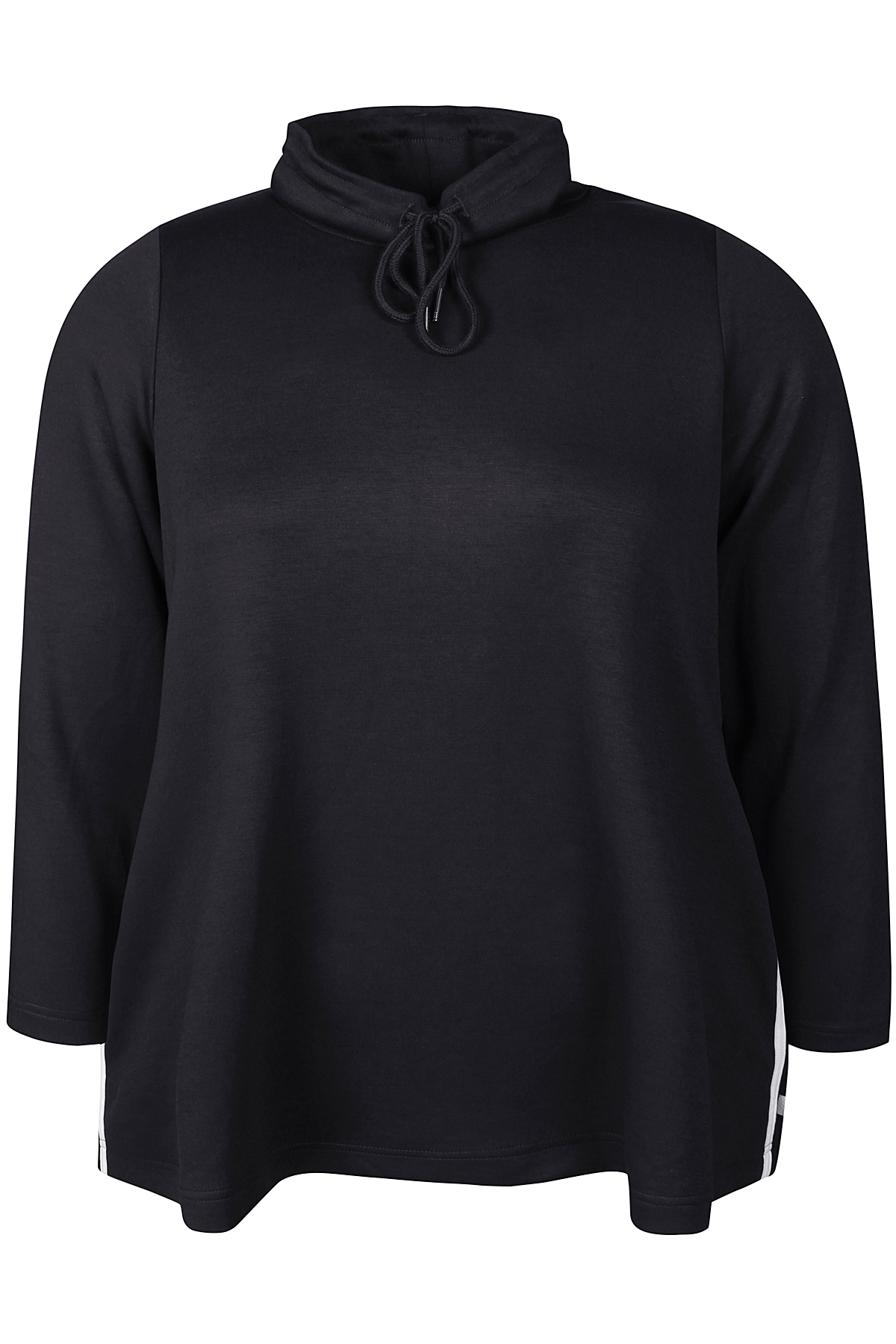 Deze Zhenzi sweater met zijstreep en hoge kraag is een comfortabel en trendy item voor je dagelijkse garderobe. De contrasterende streep langs de zijkant geeft de sweater een sportieve en moderne uitstraling, terwijl de relaxed fit zorgt voor een fijne, flatteuze pasvorm.