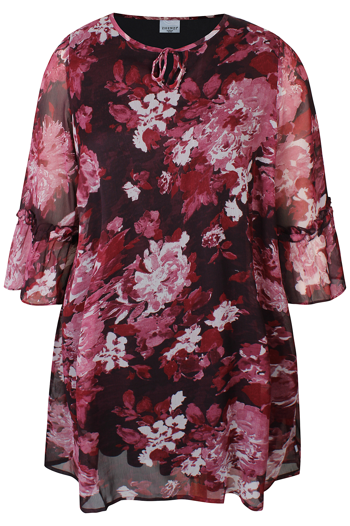 De ZHENZI tuniek met roezel mouw Toya (art. 201120) is een veelzijdig en flatterend model dat moeiteloos elegantie en comfort combineert. In een warme burgundy red tint en een mooie teal green kleur, zorgt hij voor een stijlvolle kleuraccent in je garderobe. De tuniek is vervaardigd uit een soepele blend van 100% polyester / viscose voor een zachte uitstraling en comfortabel draaggevoel.